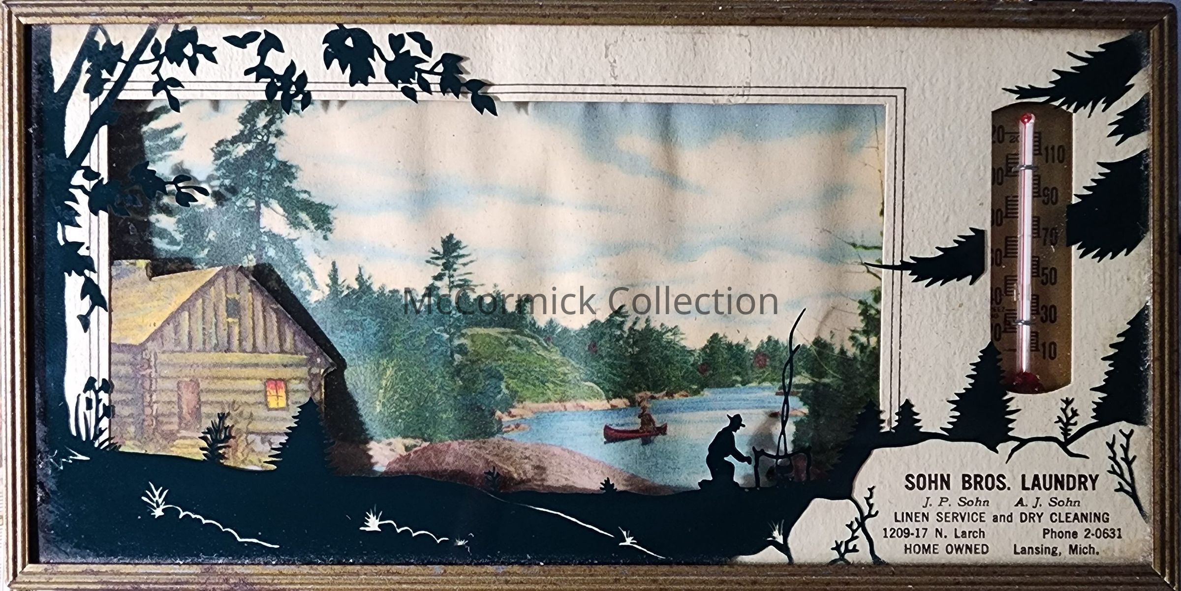 A silhouette advertising thermometer from Sohn Bros. Laundry of Lansing, Michigan.