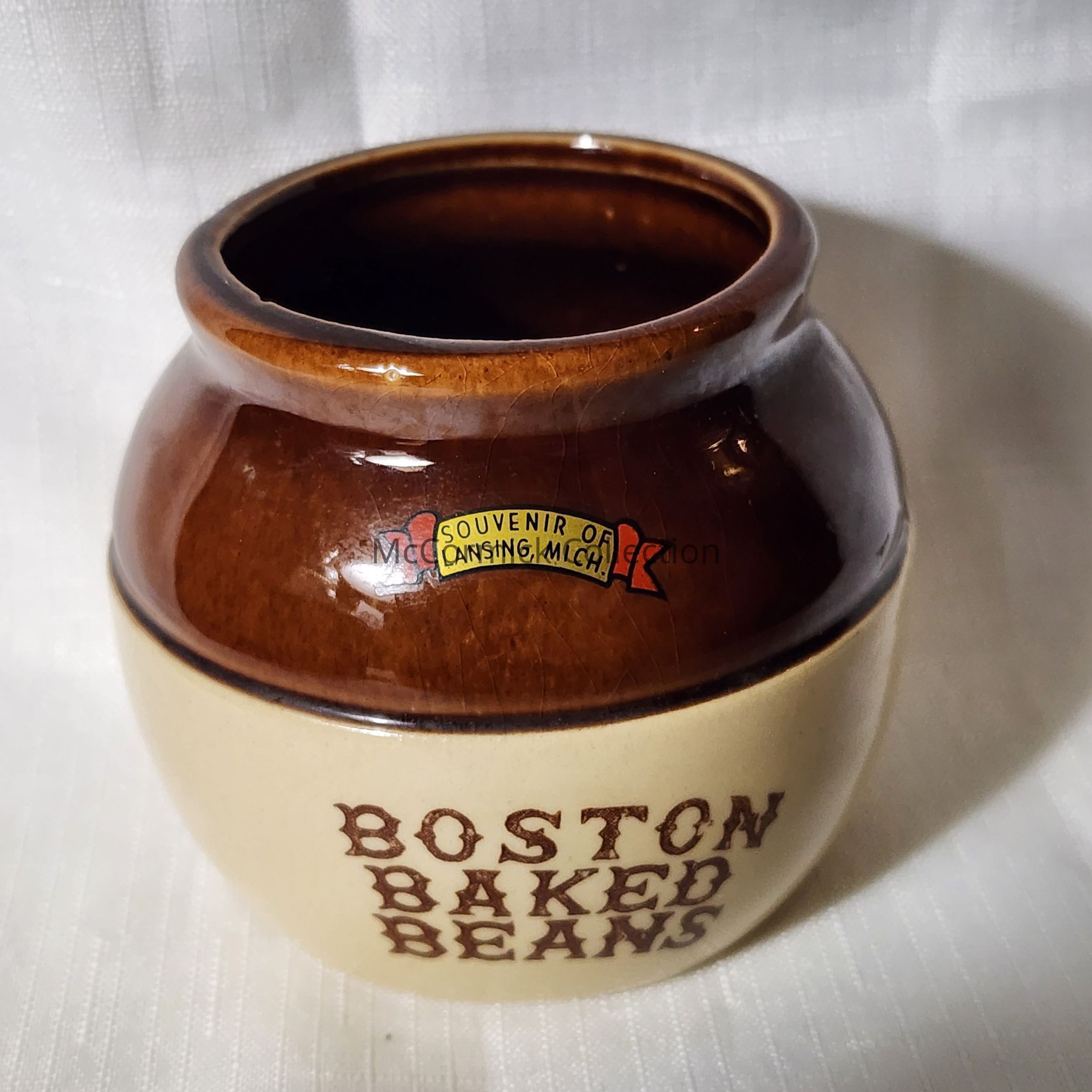 Boston Baked Beans jar/crock souvenir of Lansing, Michigan.