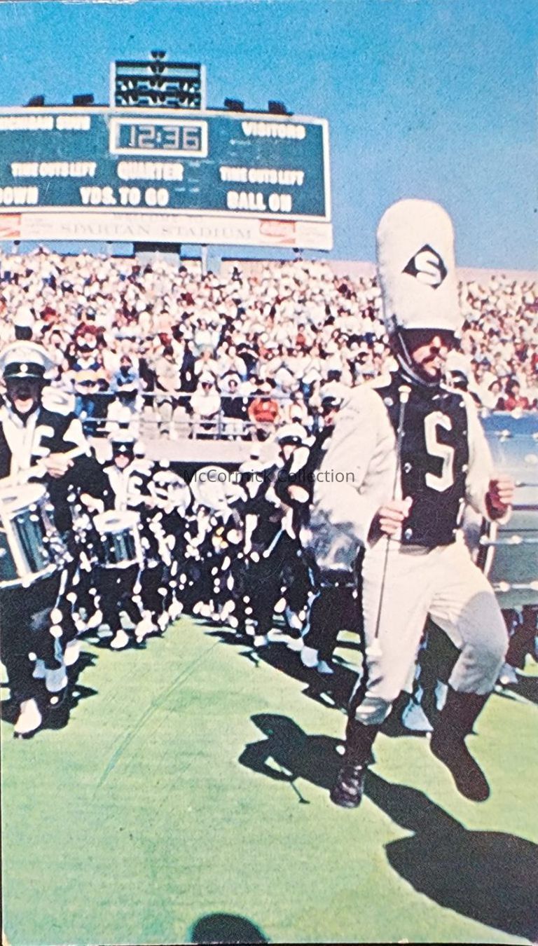 Postcard of the MSU Spartan Marching Band in Spartan Stadium.