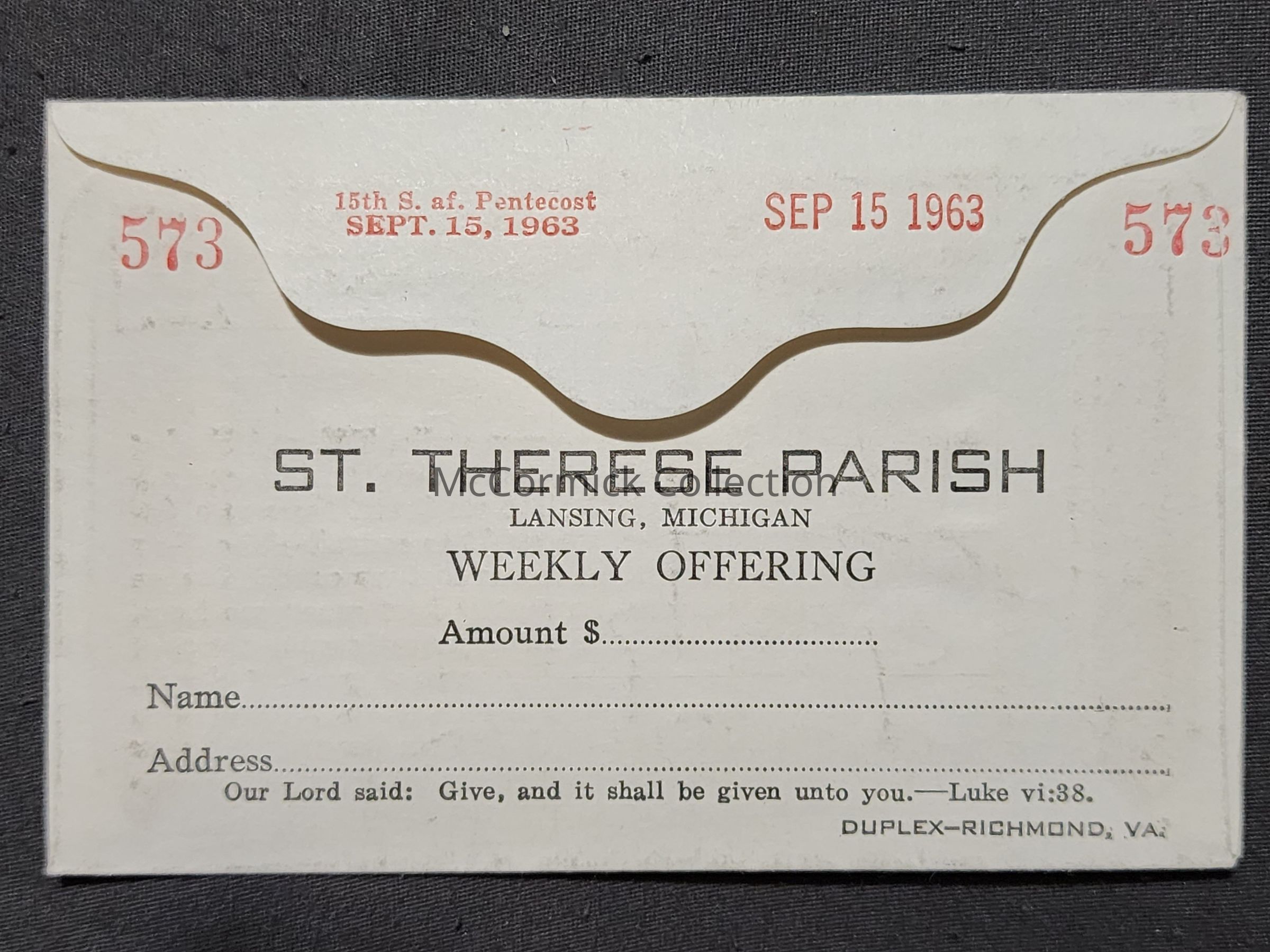 St. Therese Parish Weekly Offering Envelope