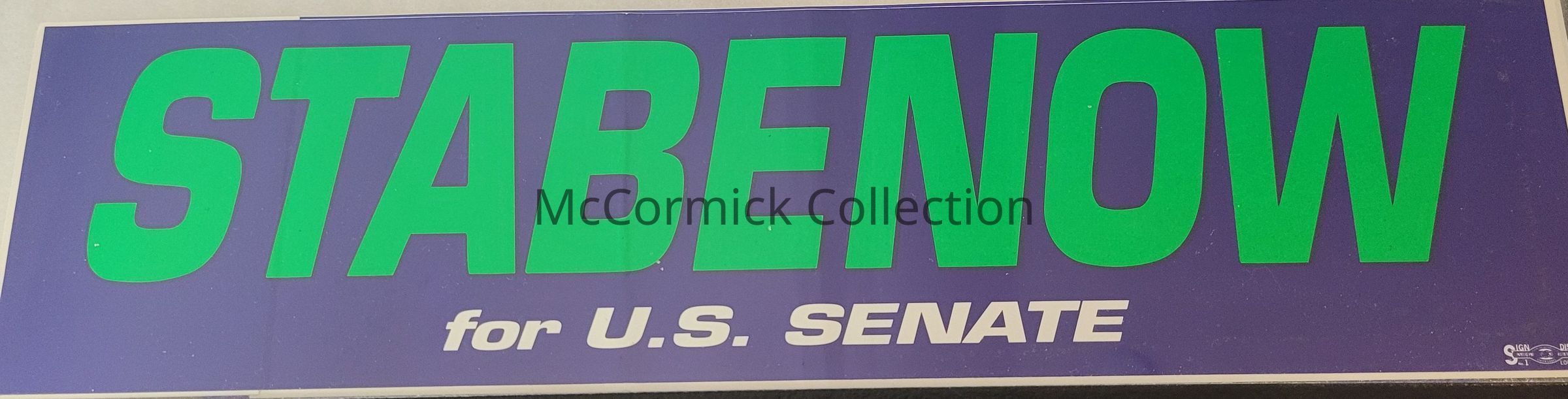 A blue, green, and white political bumper sticker for Debbie Stabenow for U.S. Senate, circa 2000s.