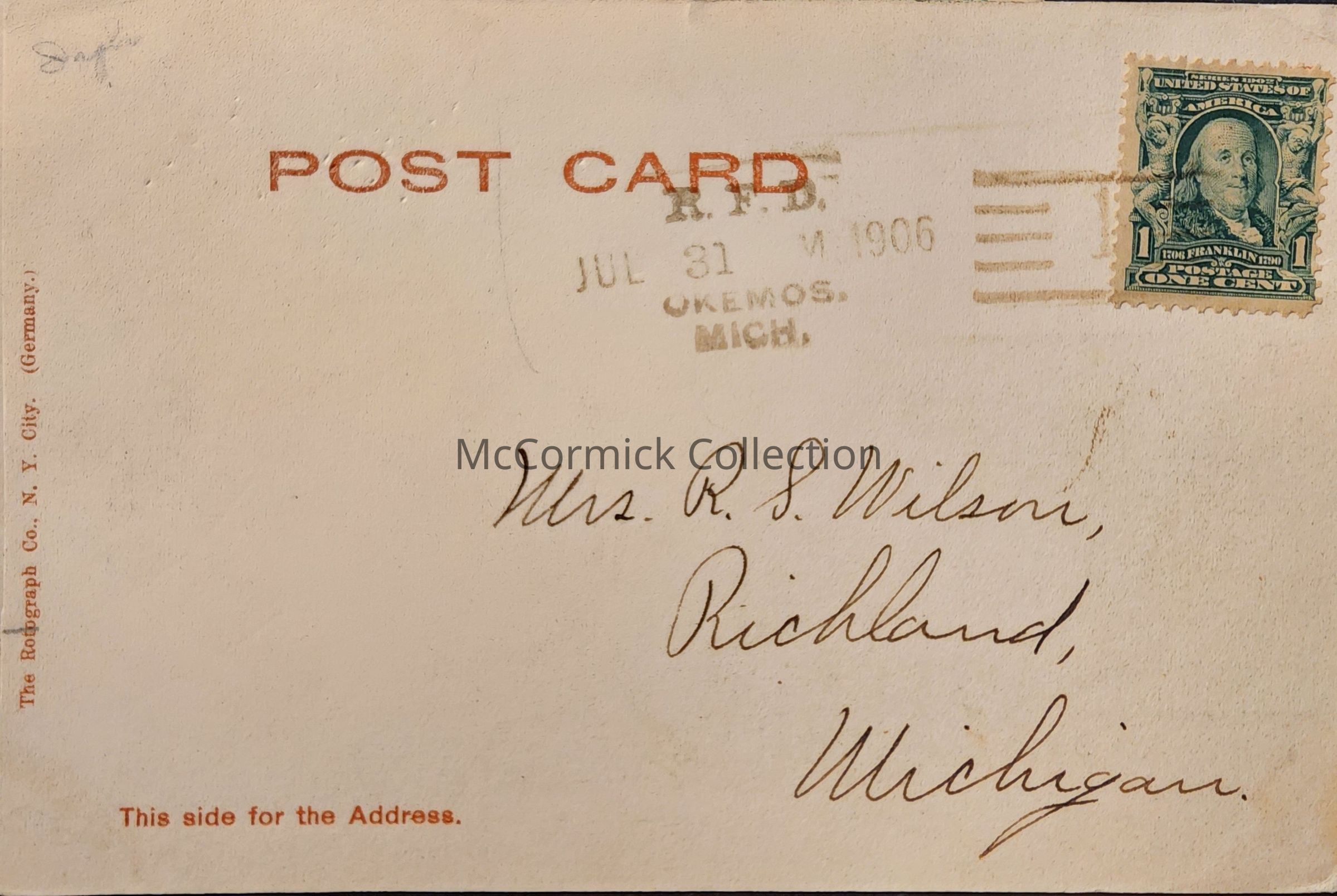 Postmarked Okemos, Mich., 1906