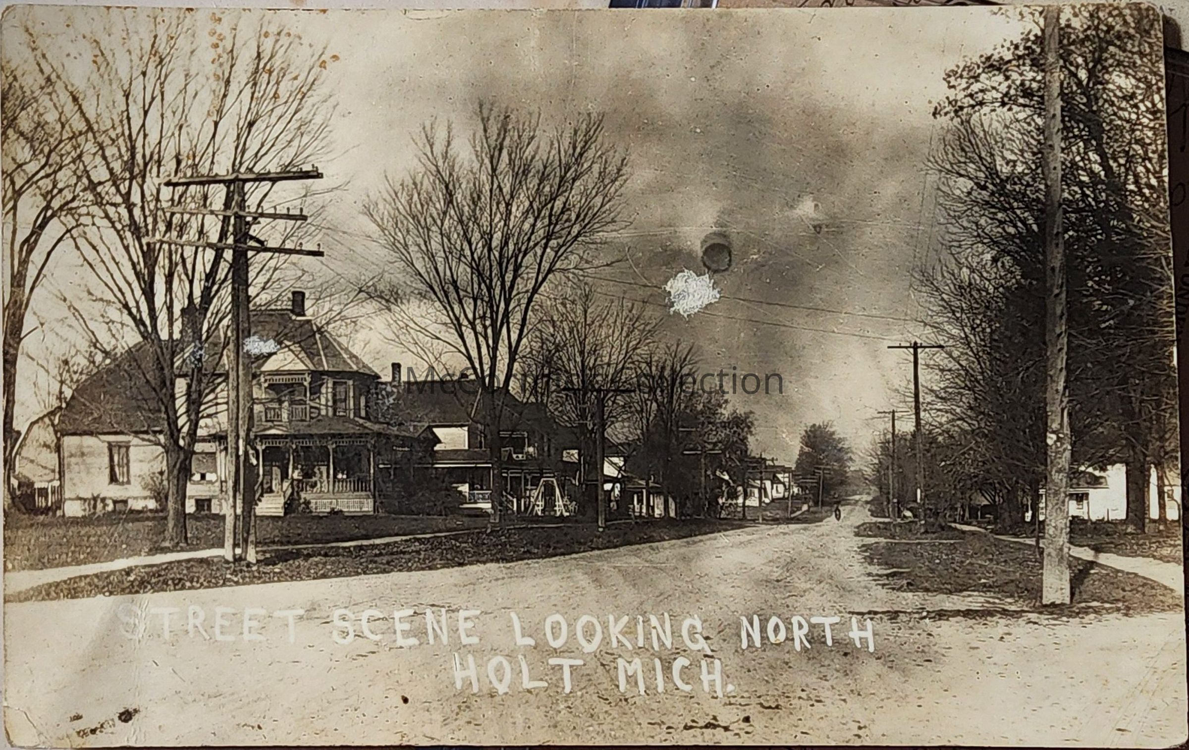 Street Scene Looking North, Holt, Mich. RPPC