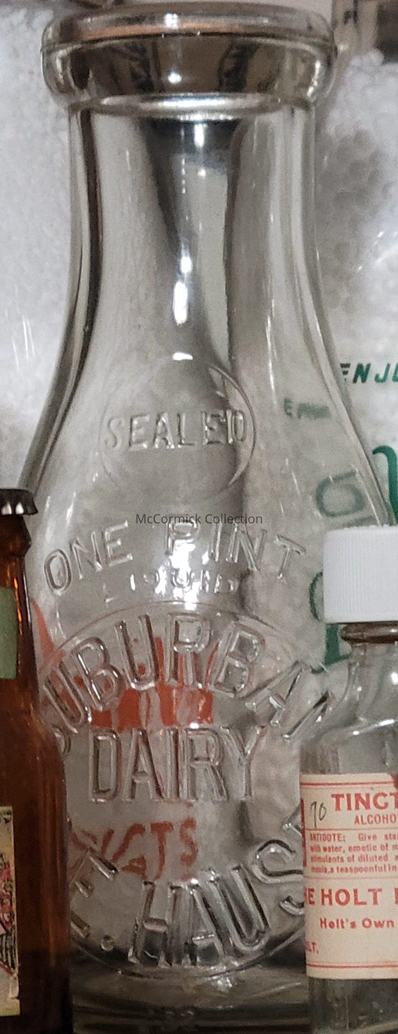 An embossed pint with slug plate from Suburban Dairy C.E. Hause of Holt, Michigan.