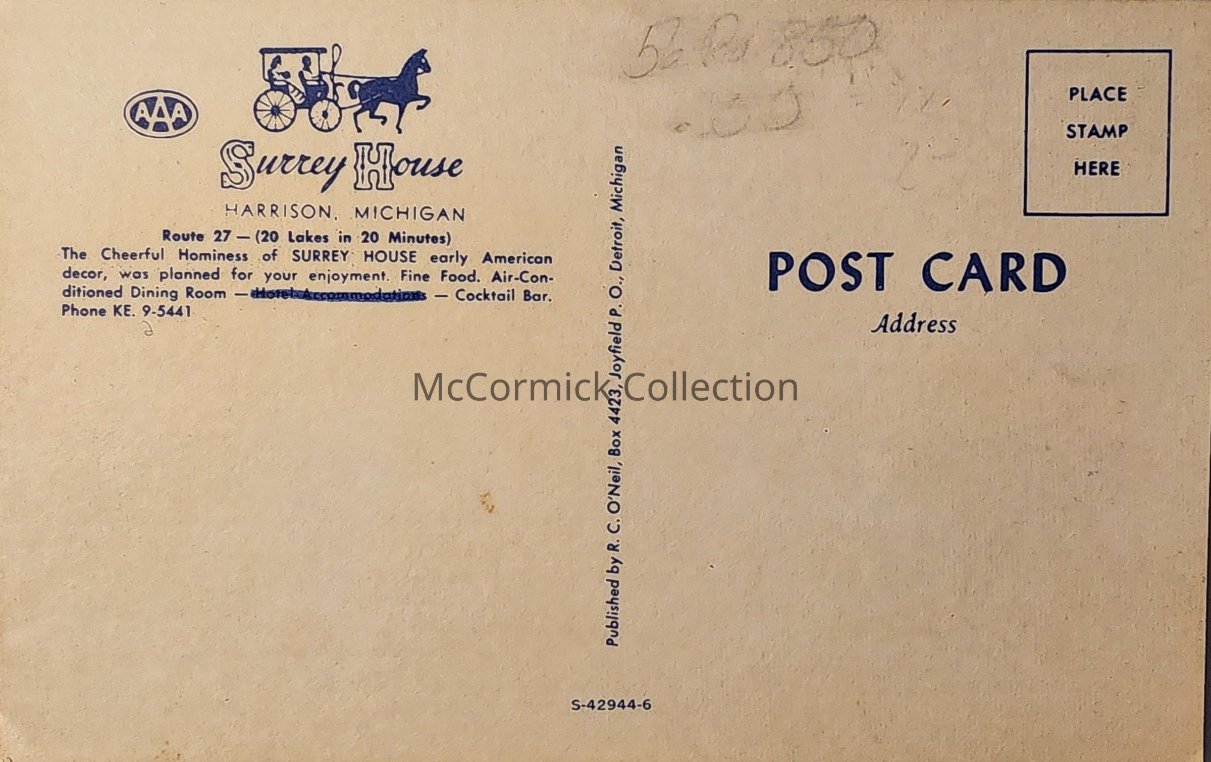 Surrey House, Harrison, Michigan, Postcard
