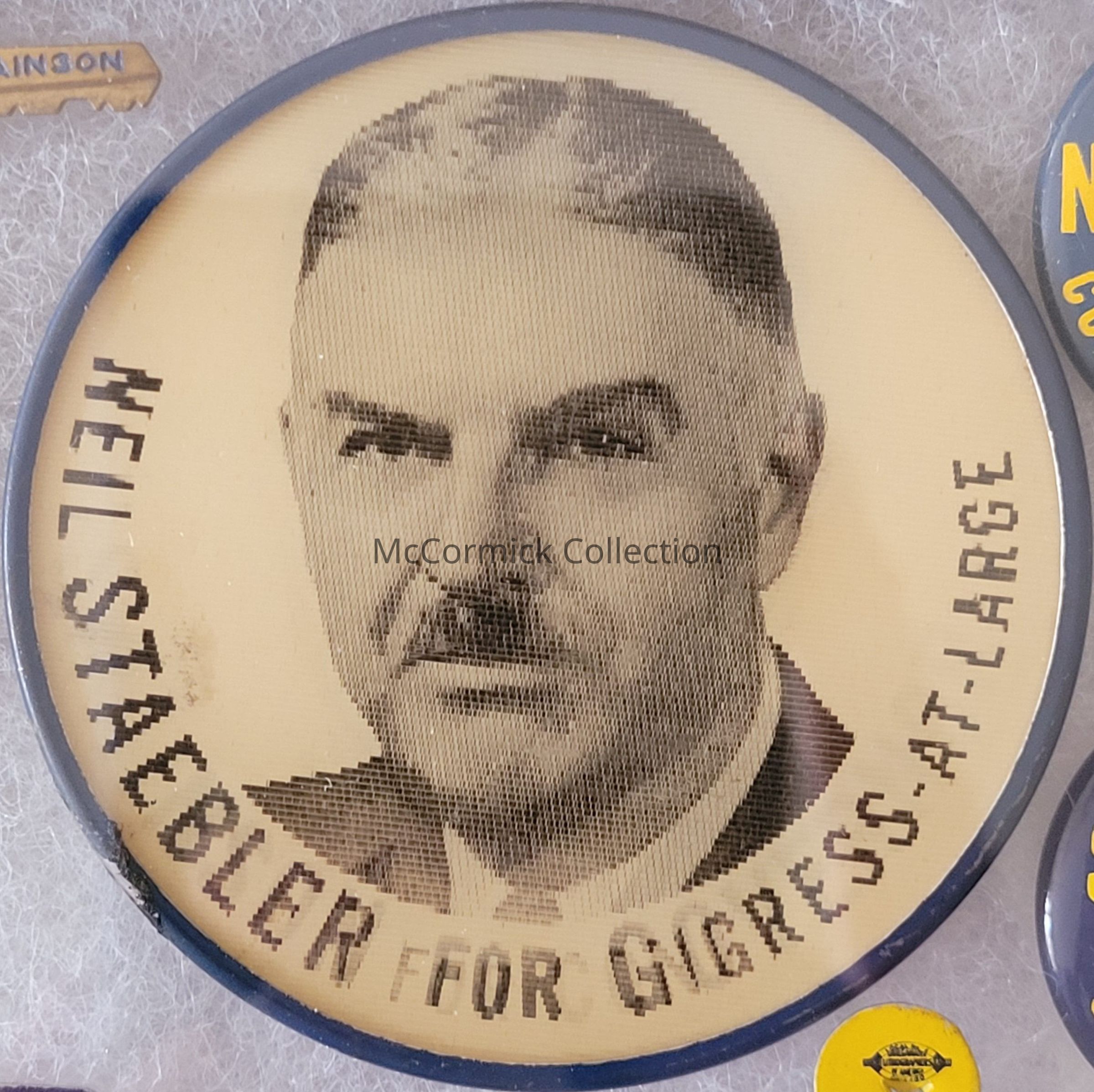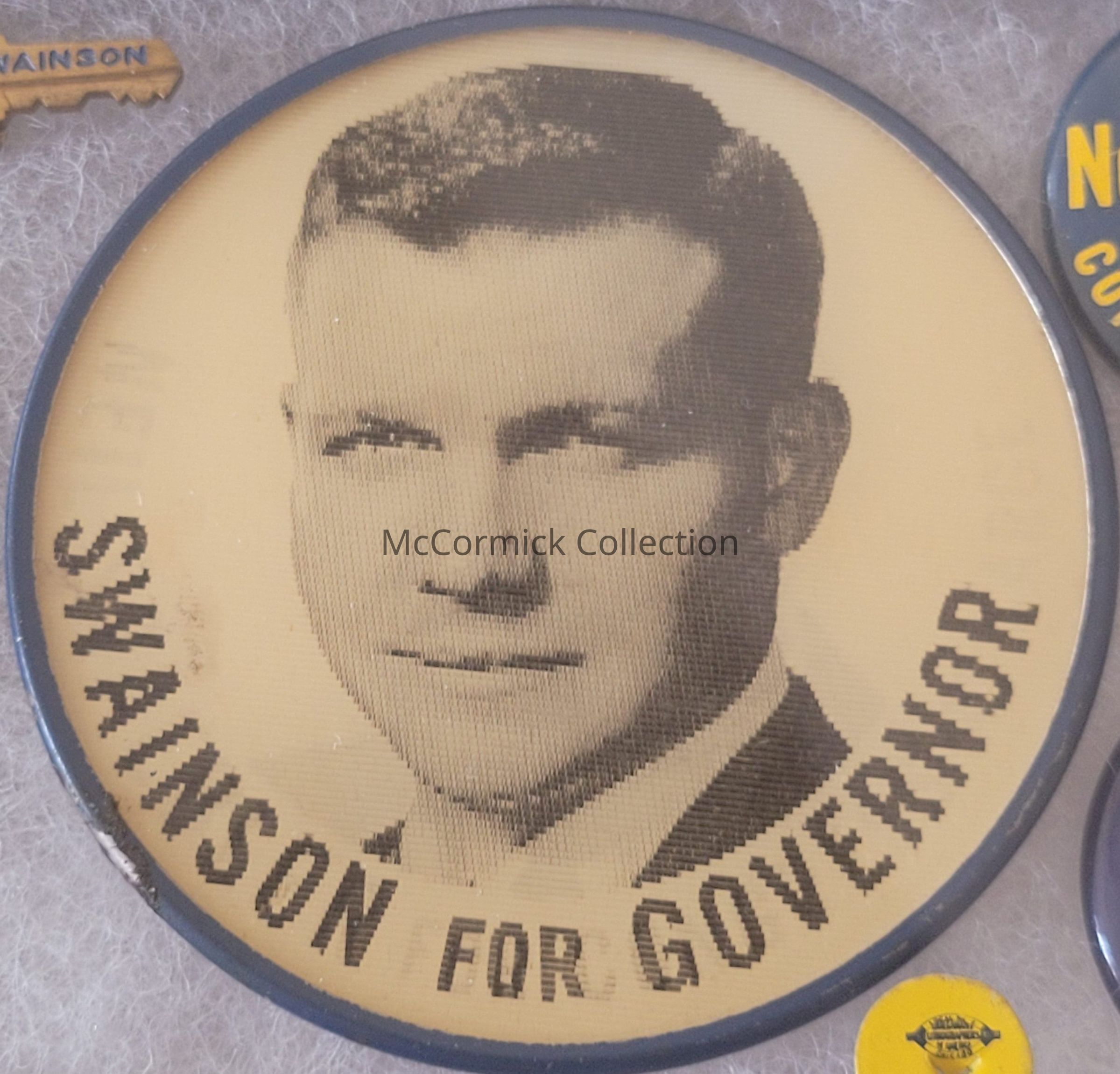 A 2.5" political coattail flasher button for John B. Swainson for Governor and Neil Staebler for Congress-At-Large, 1962.