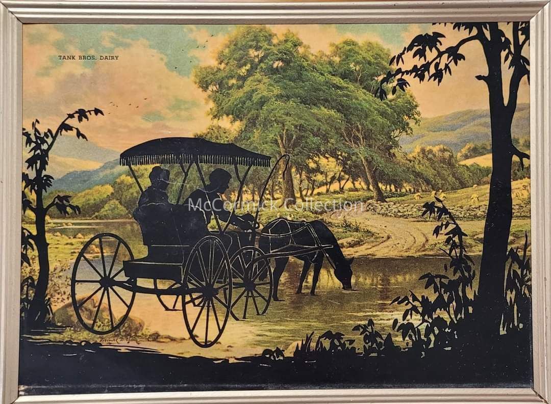 A framed advertising silhouette from the Tank Bros. Dairy of Lansing.