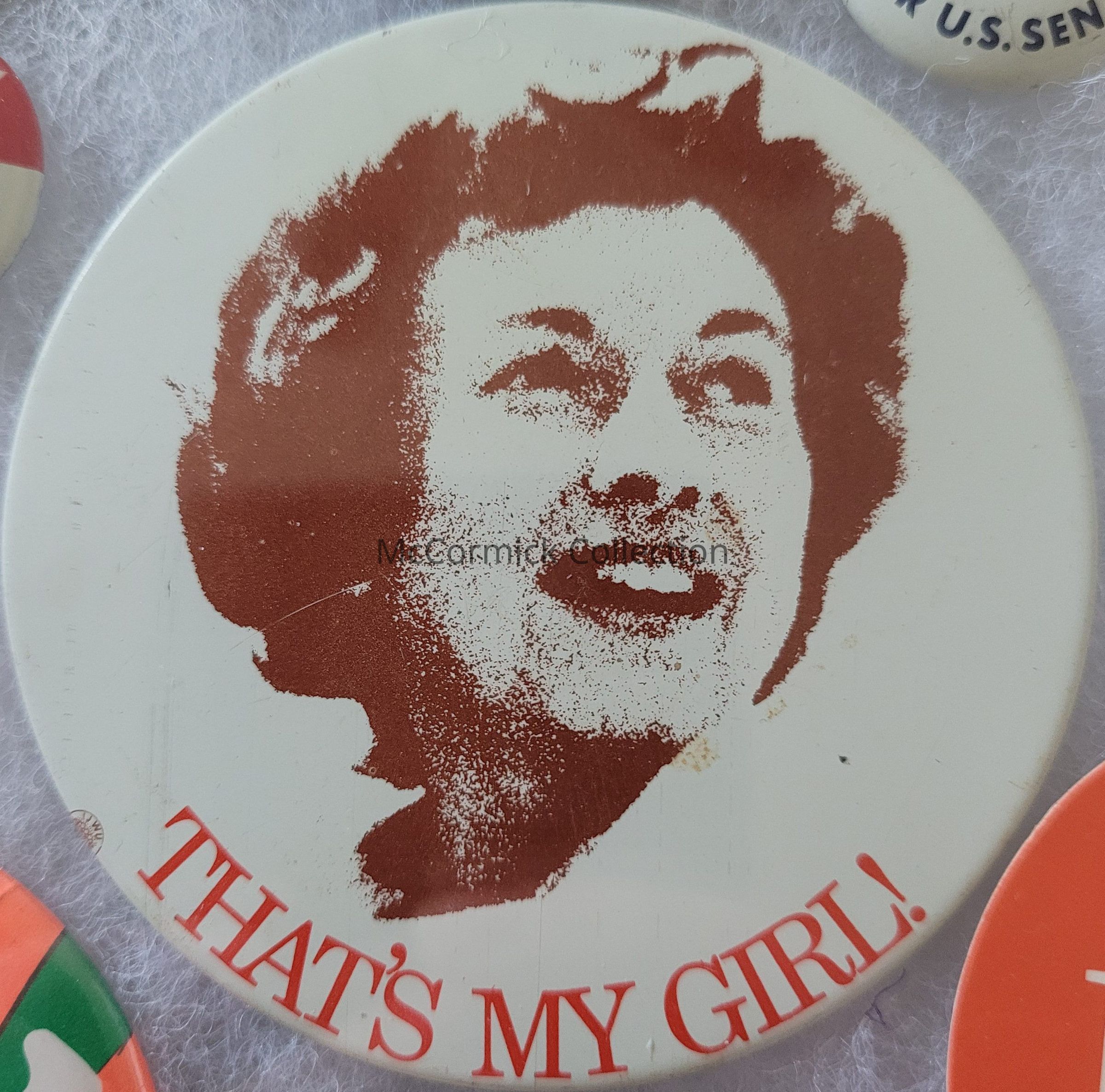 A 3" political button for Lenore Romney for United States Senator, 1970, with the "That's My Girl!" slogan.