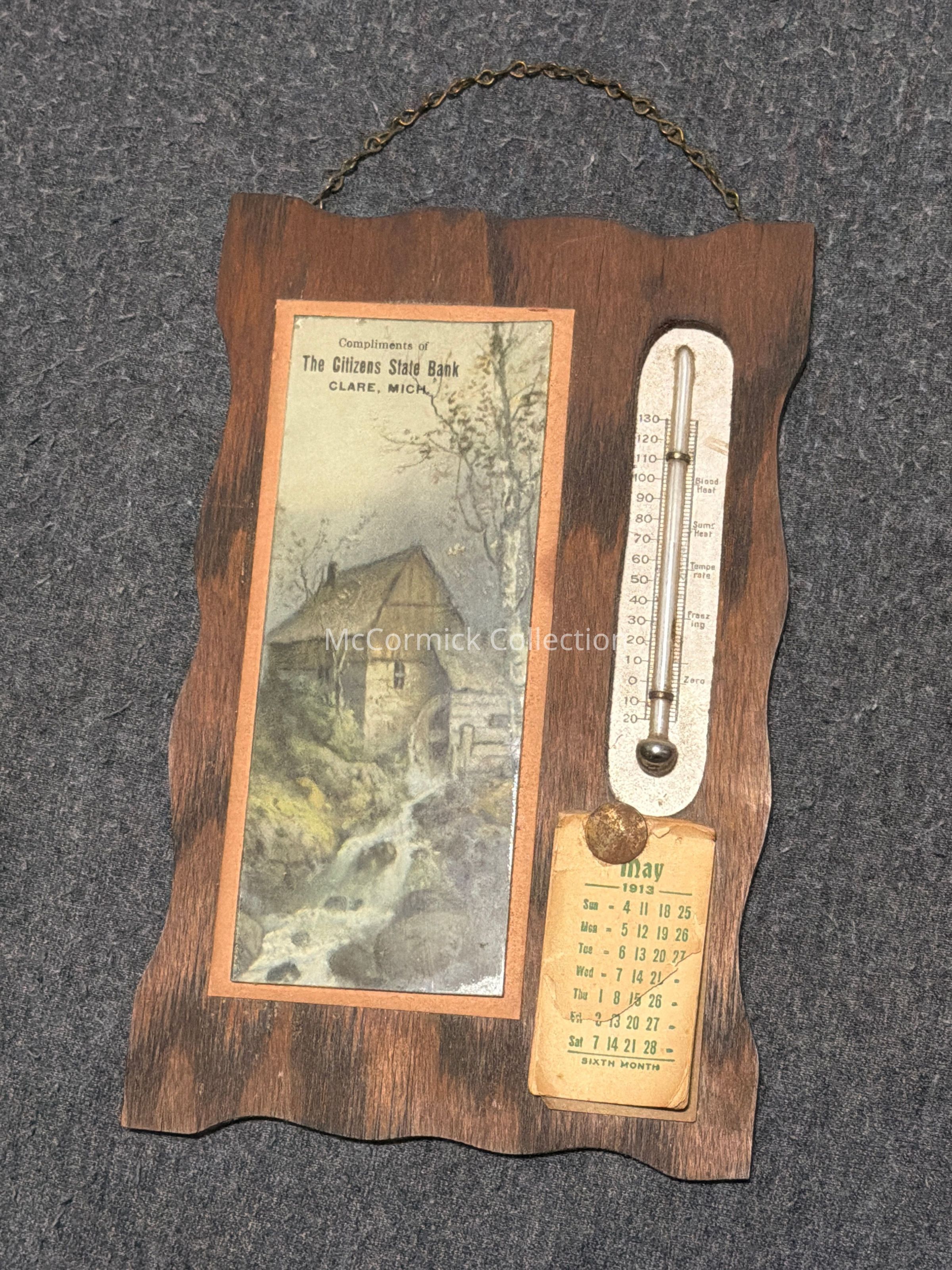 The Citizens Bank, Clare, Mich., Advertising Calendar and Thermometer