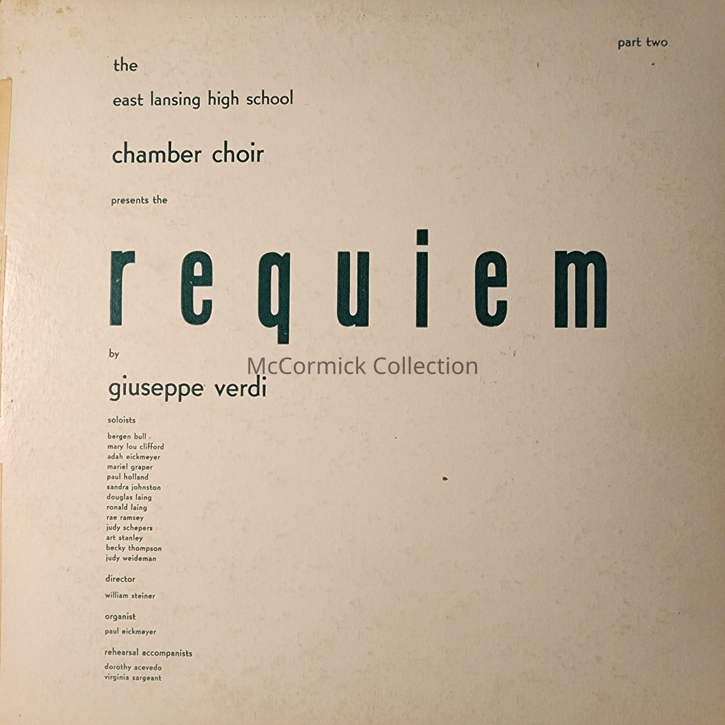 The East Lansing High School Chamber Choir Presents the Requiem, Part One and Two, Records
