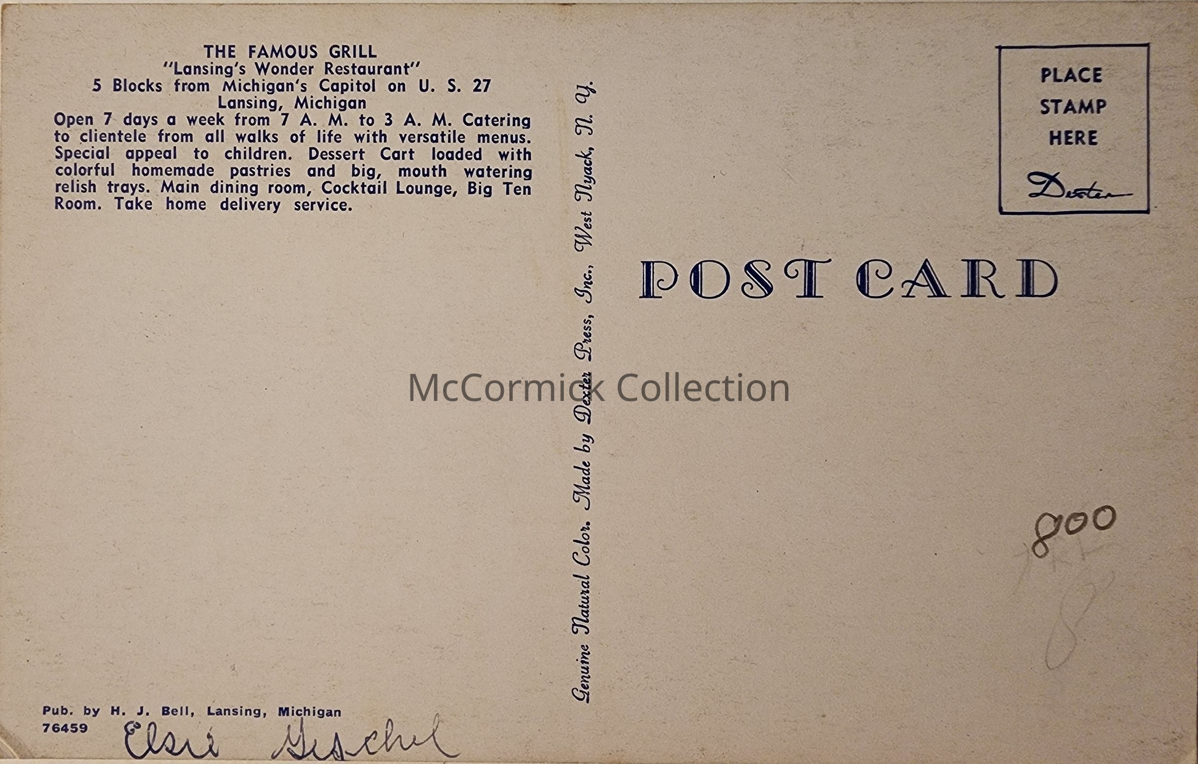 The Famous Grill, Lansing, Michigan, Postcard