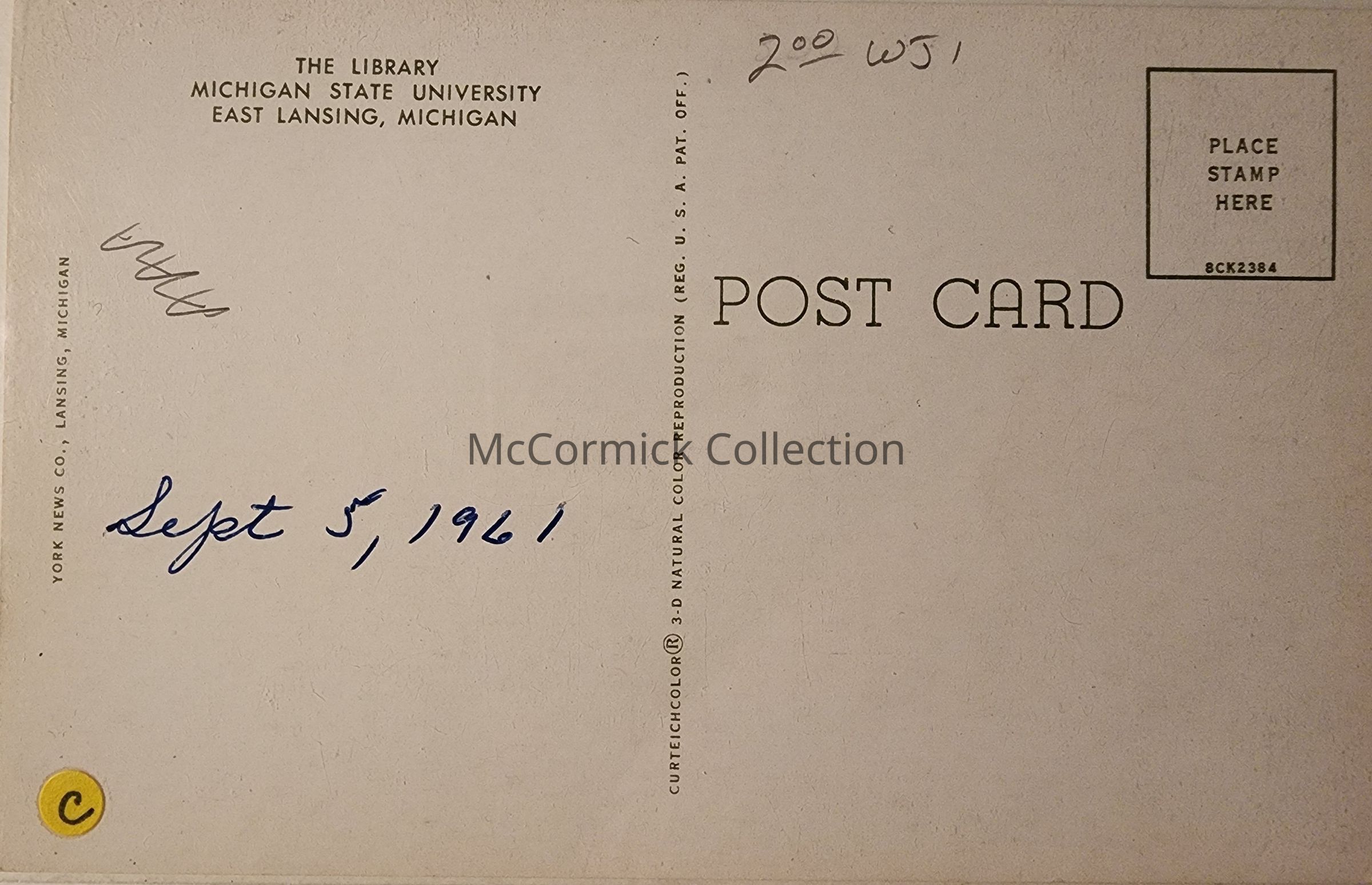 The Library, Michigan State University, East Lansing, Michigan, Postcard