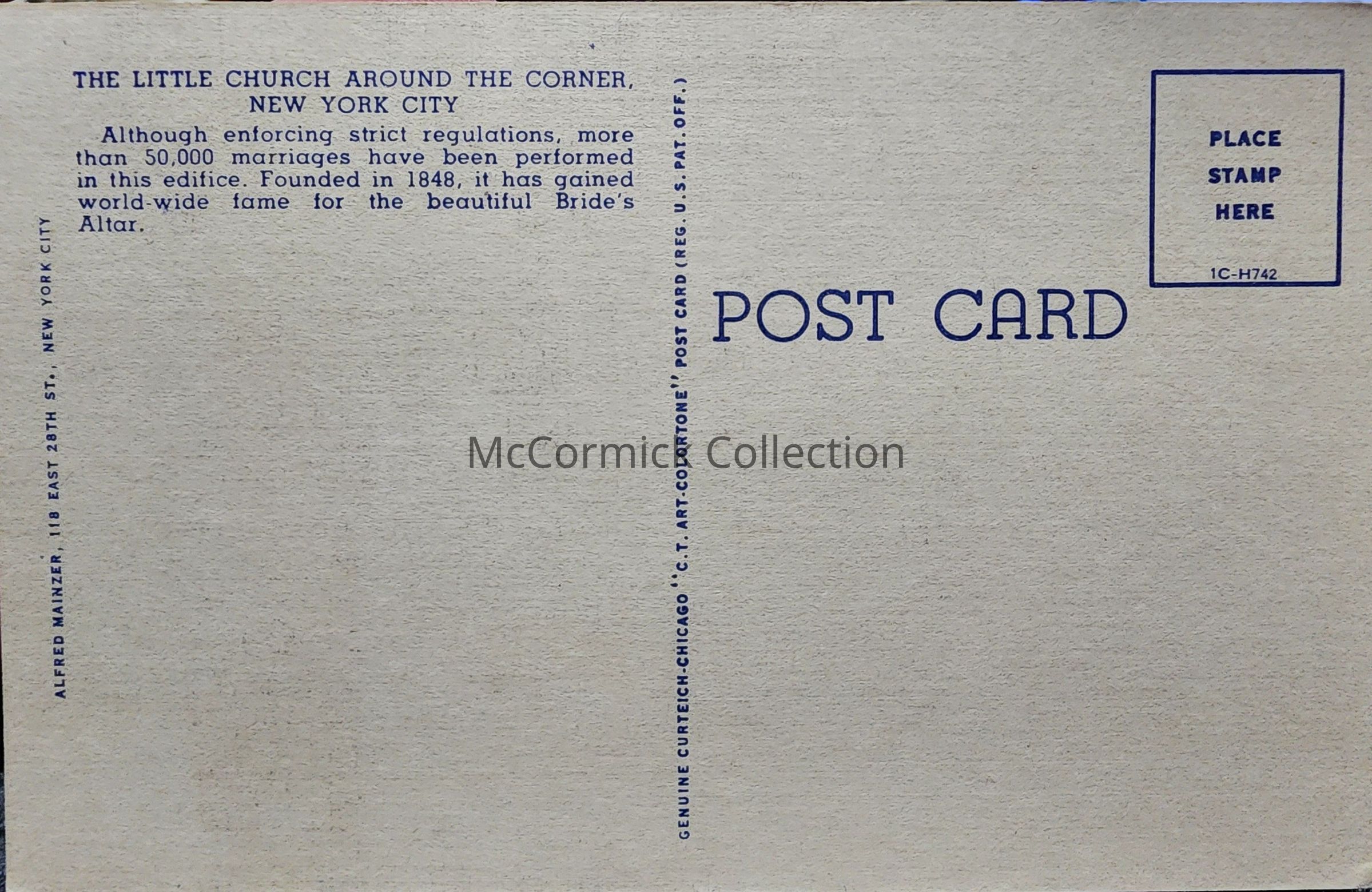 The Little Church Around the Corner, New York City, Postcard