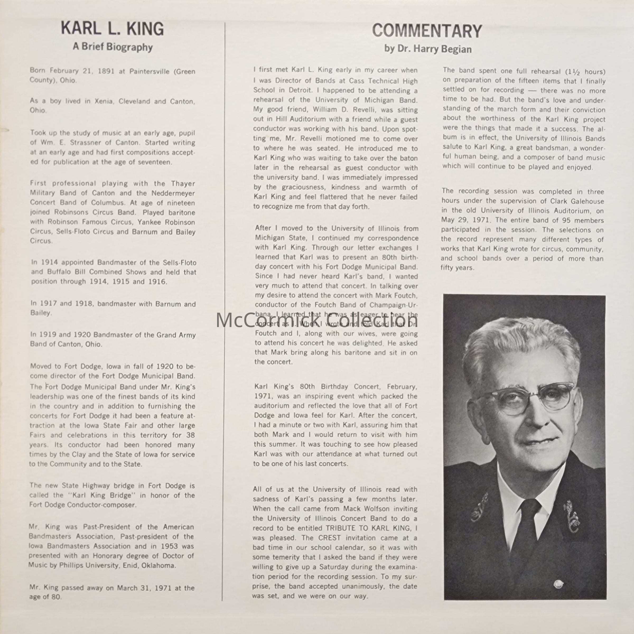 The Music of Karl King, University of Illinois Symphonic Band, Record