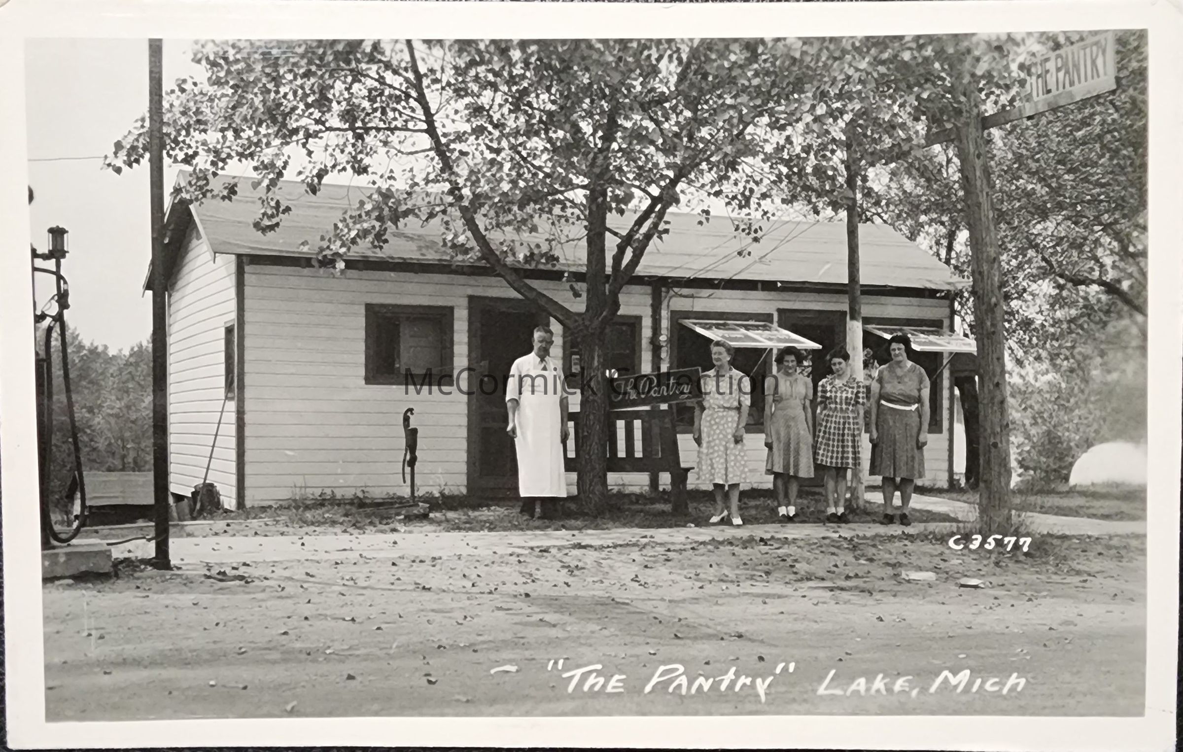 Real photo postcard of the Pantry in Lake, Michigan. Postmarked 1948. Addressed to Grand Rapids. Negative number is C3577.