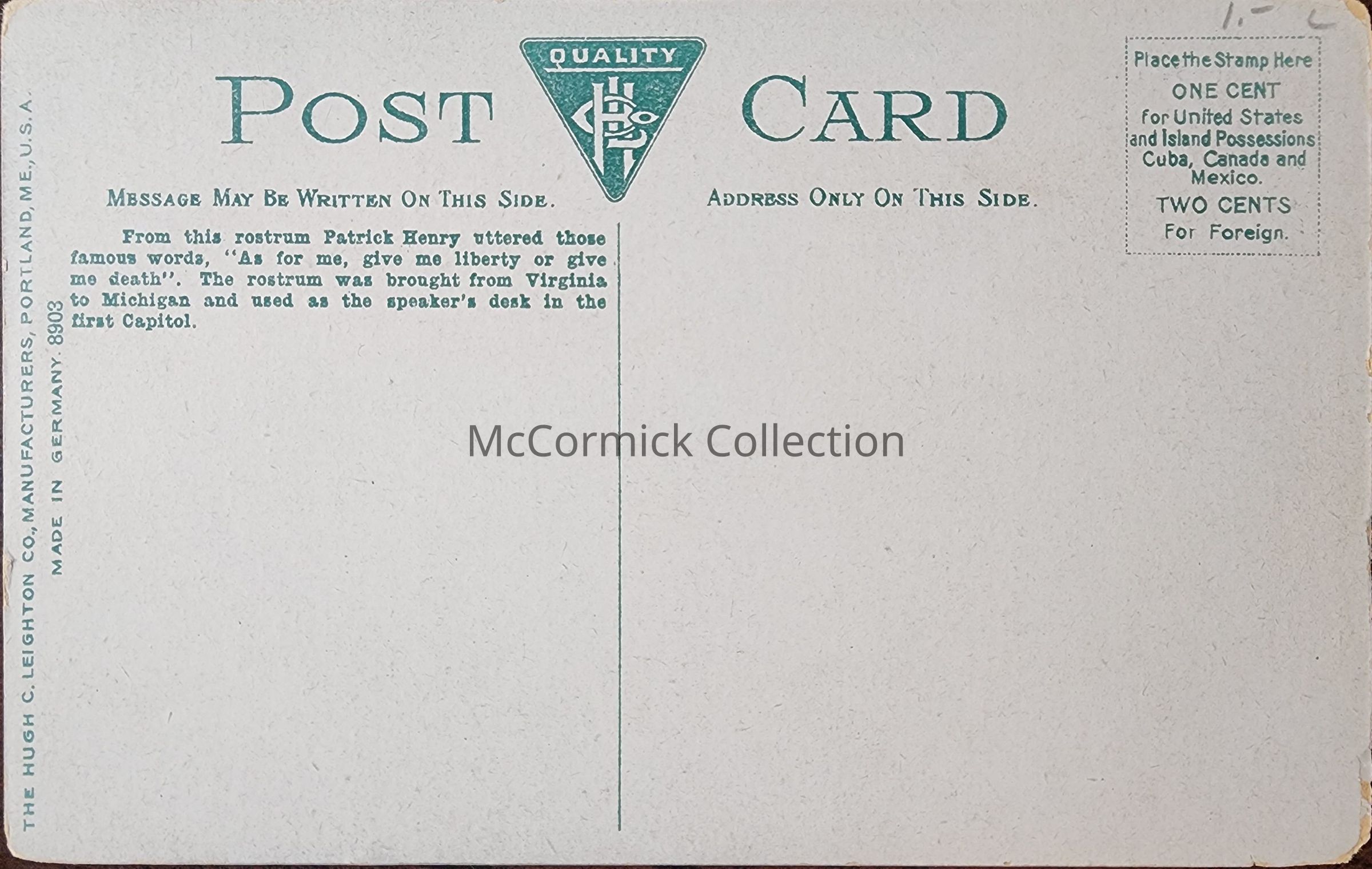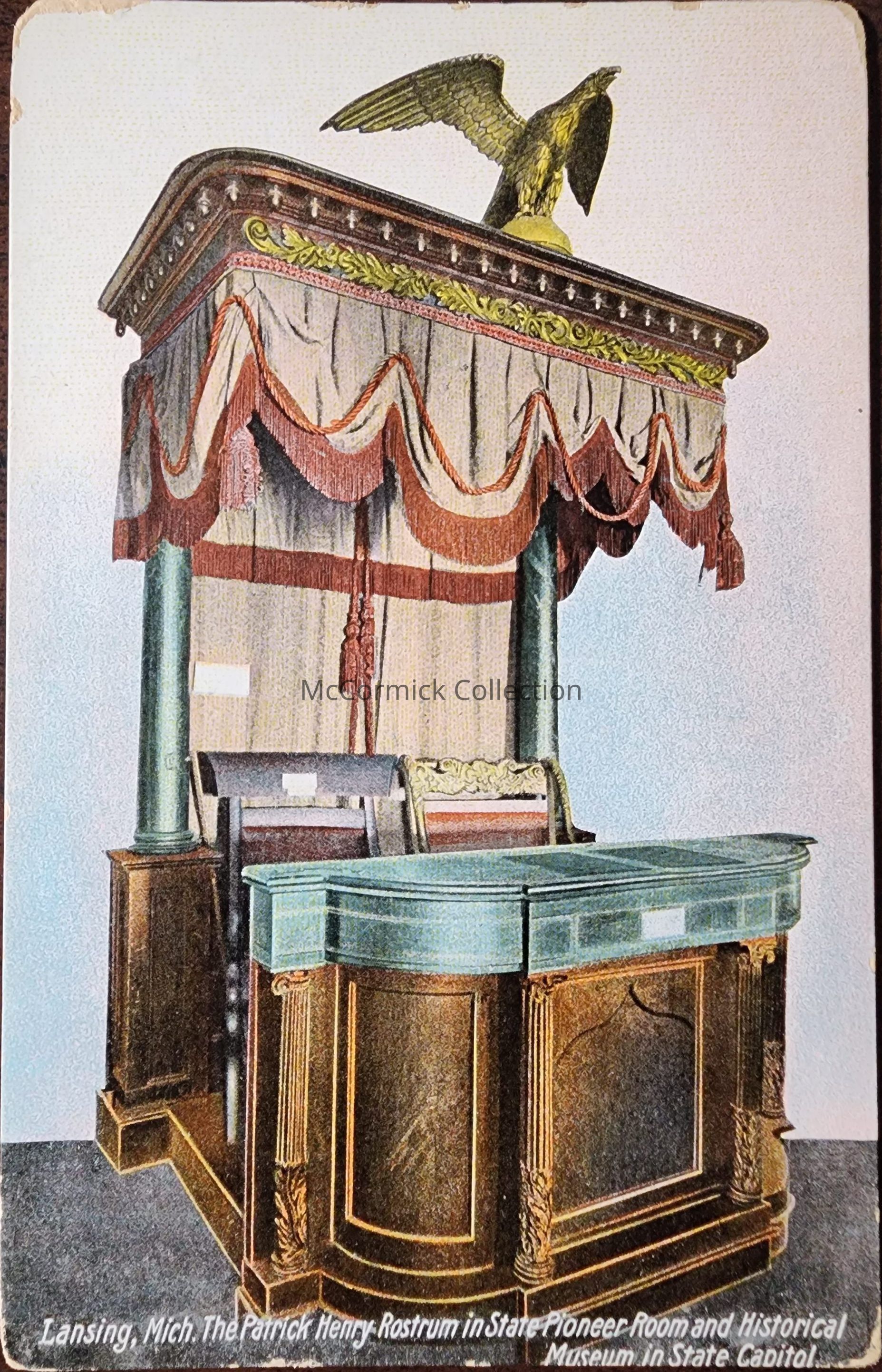 The Patrick Henry Rostrum in State Pioneer Room and Historical Museum in State Captiol Postcard