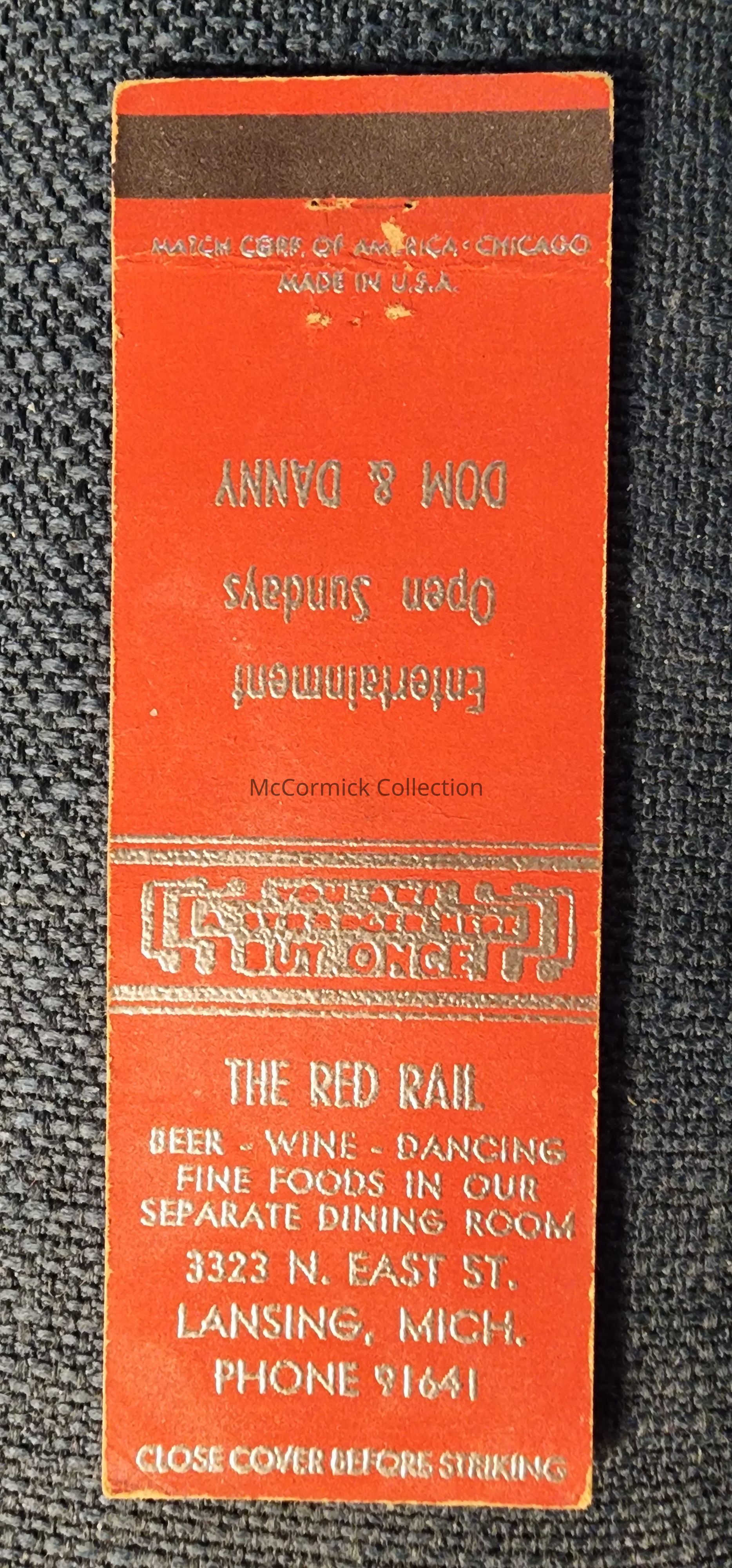 The Red Rail, Lansing, Mich., Matchbook