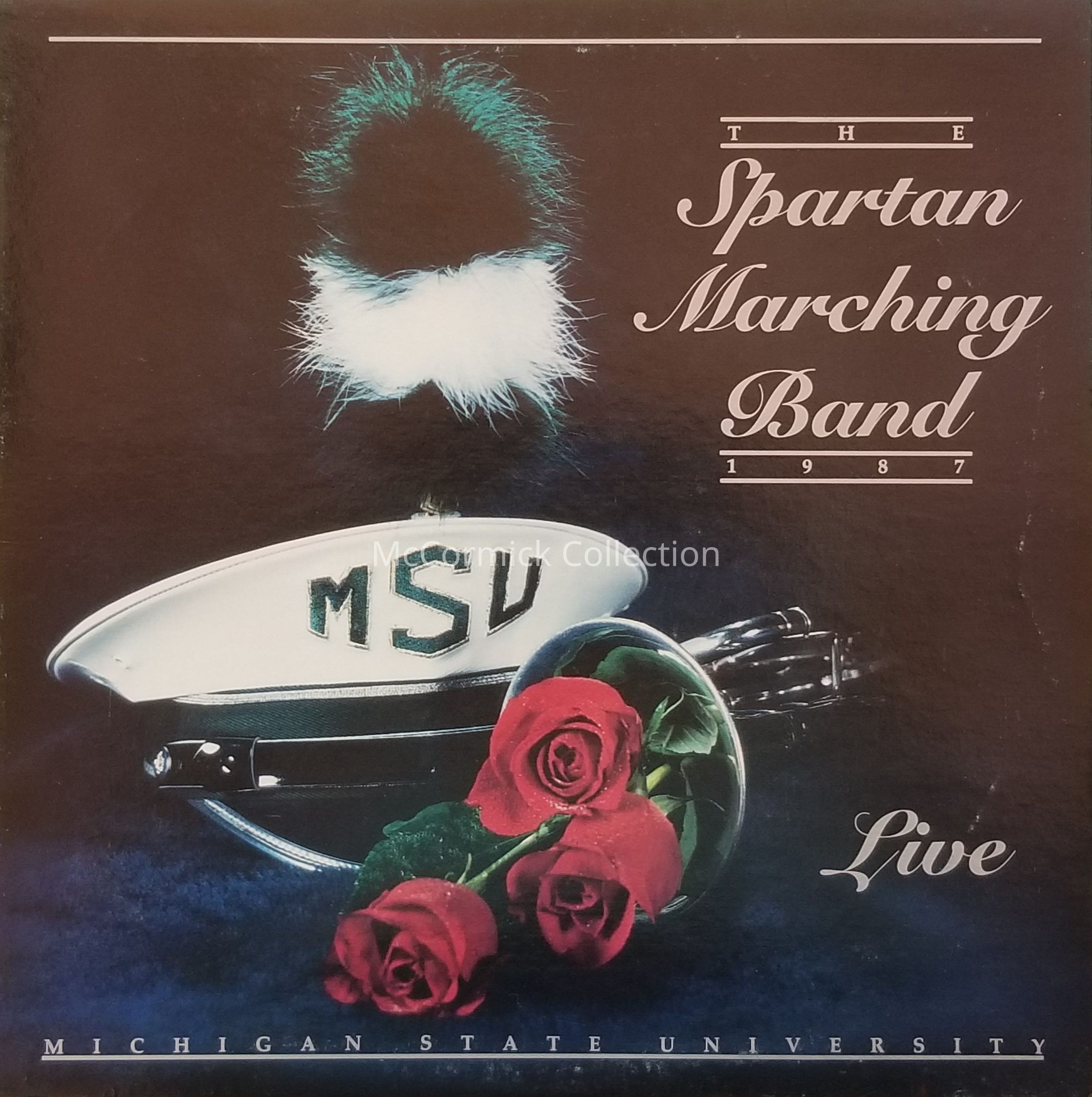 The 1987 record titled "The Spartan Marching Band 1987 / Live / Michigan State University," with Rose Bowl theme cover art.