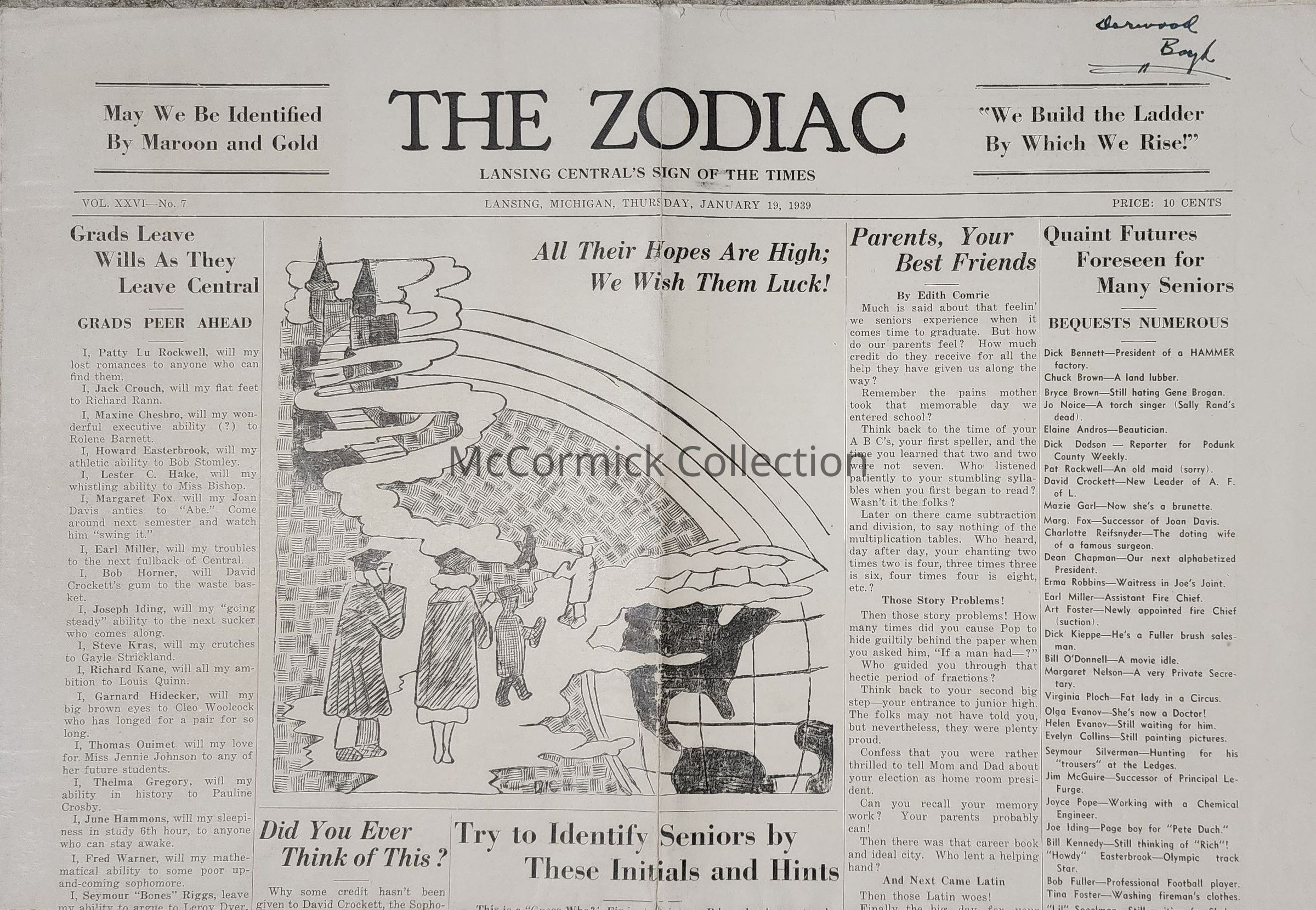 Lansing Central High School student newspaper. Copy belonged to Derwood Boyd.