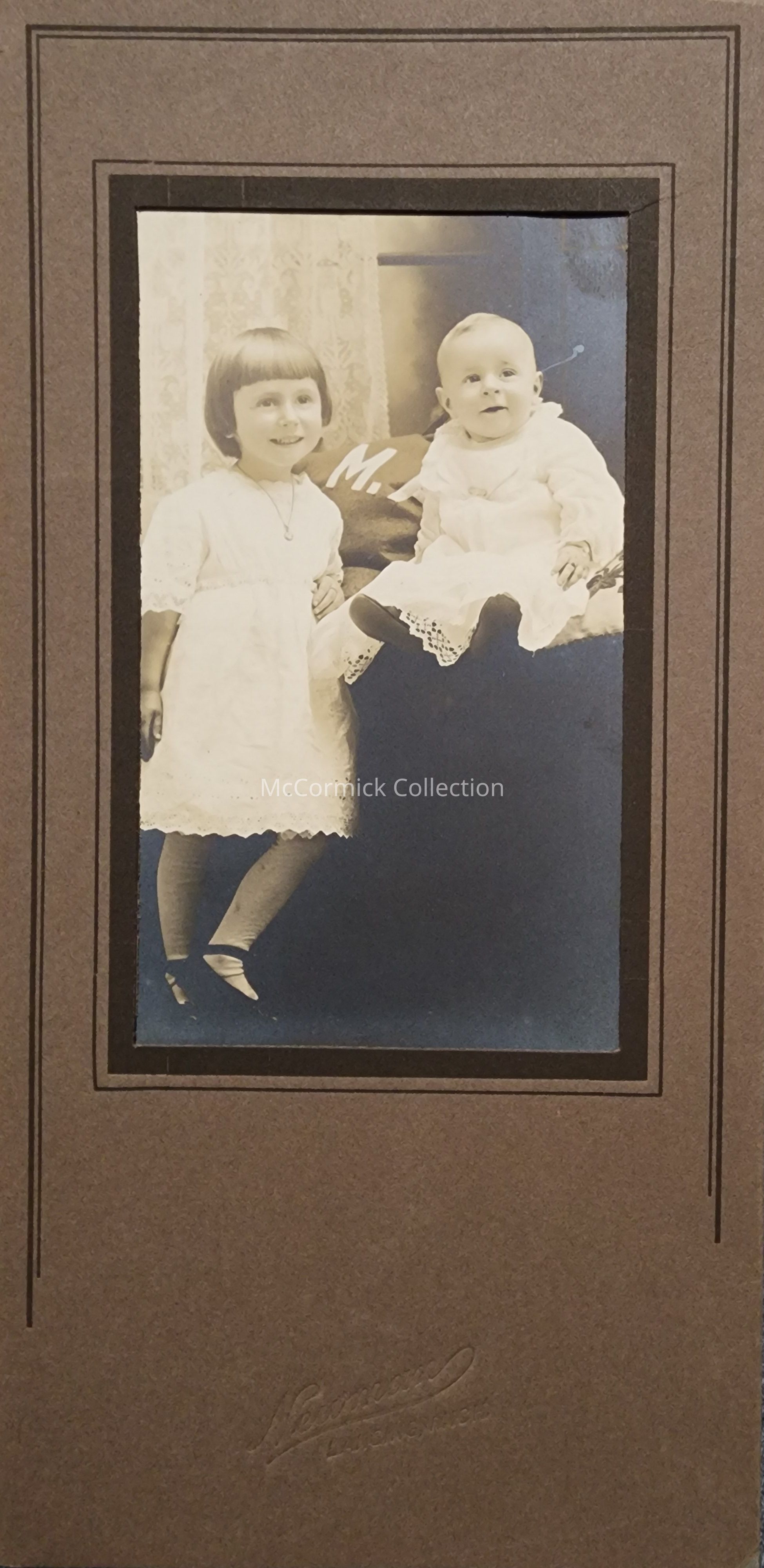 Folder frame mounted photograph of Thelma and Irvin Schaible by Lansing photographer Newman.