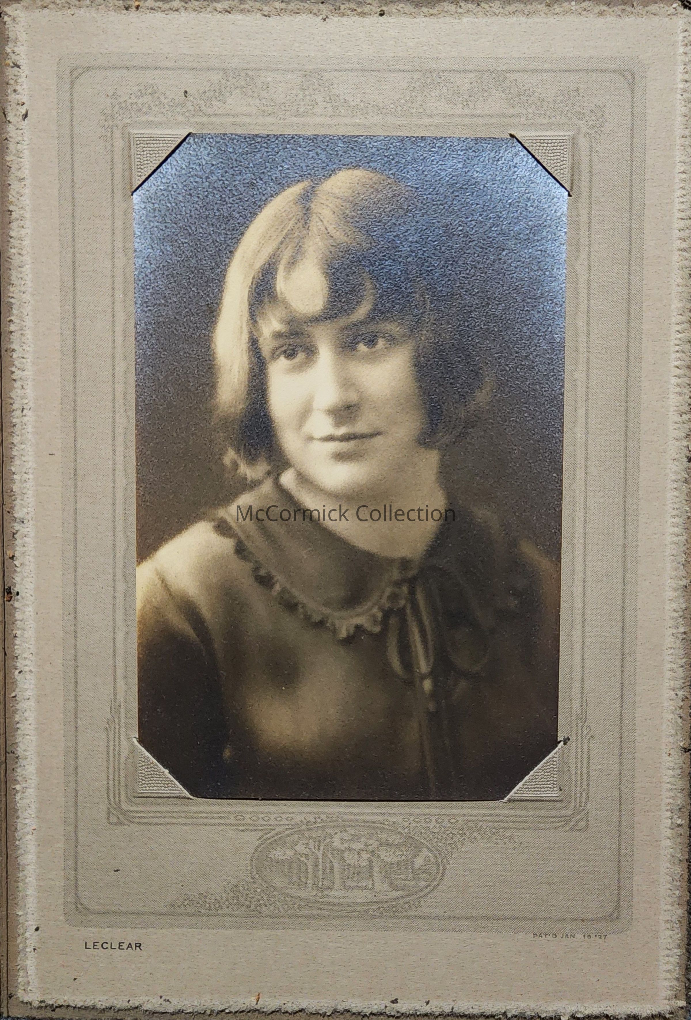 Folder frame mounted photograph of Thelma Schaible by Lansing photographer LeClear.