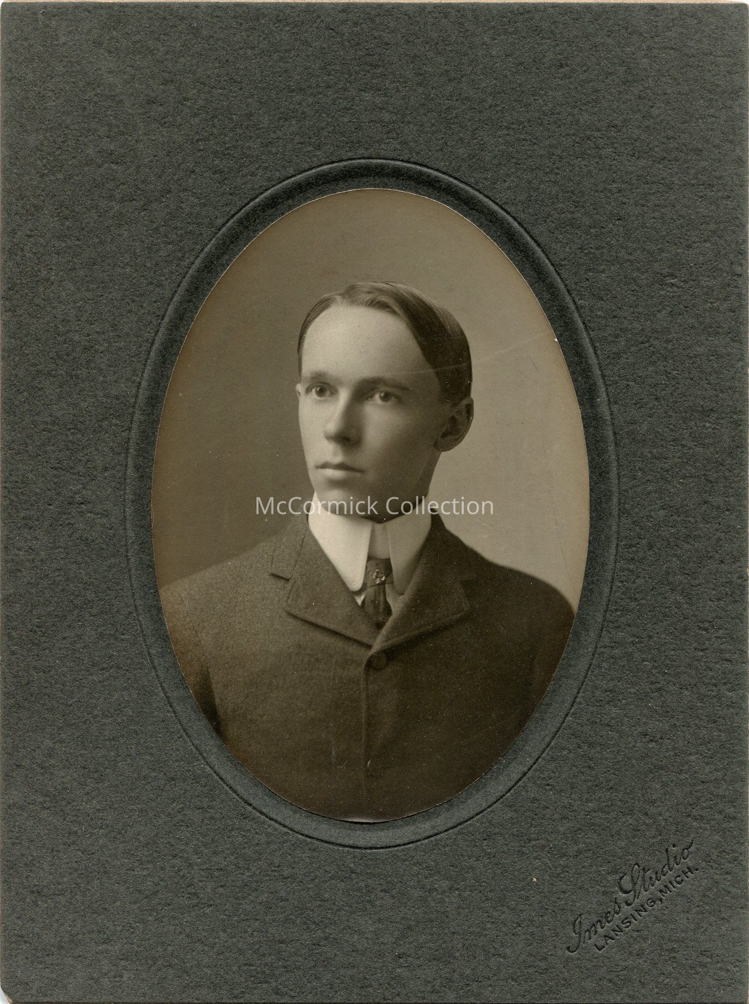 Portrait card-mounted photograph of Theron P. Chase of Lansing, Michigan Agricultural College Class of 1903. Photo by Lansing photographer Imes.