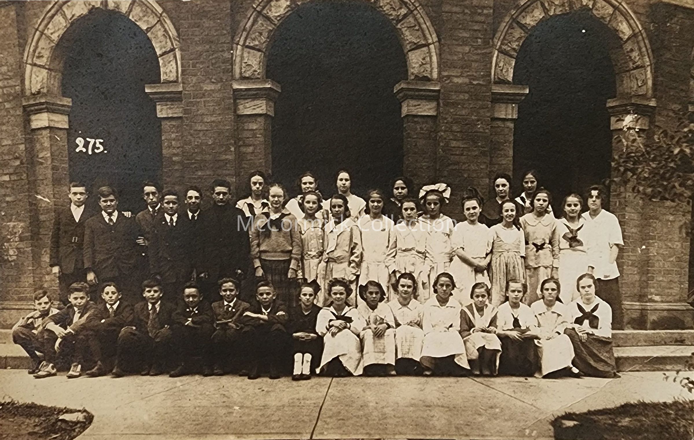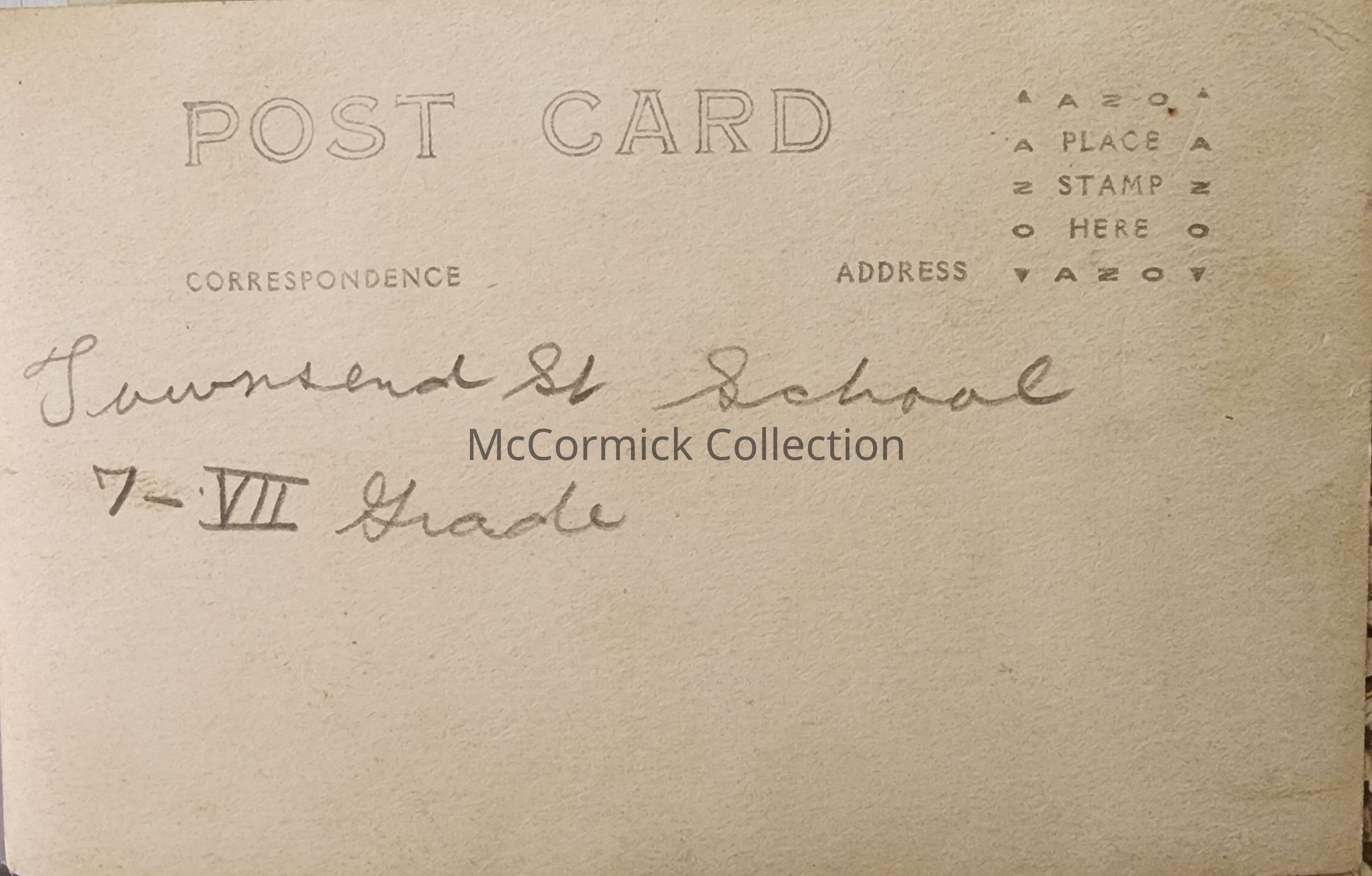 Real photo postcard of the seventh grade class at Townsend Street School in Lansing.