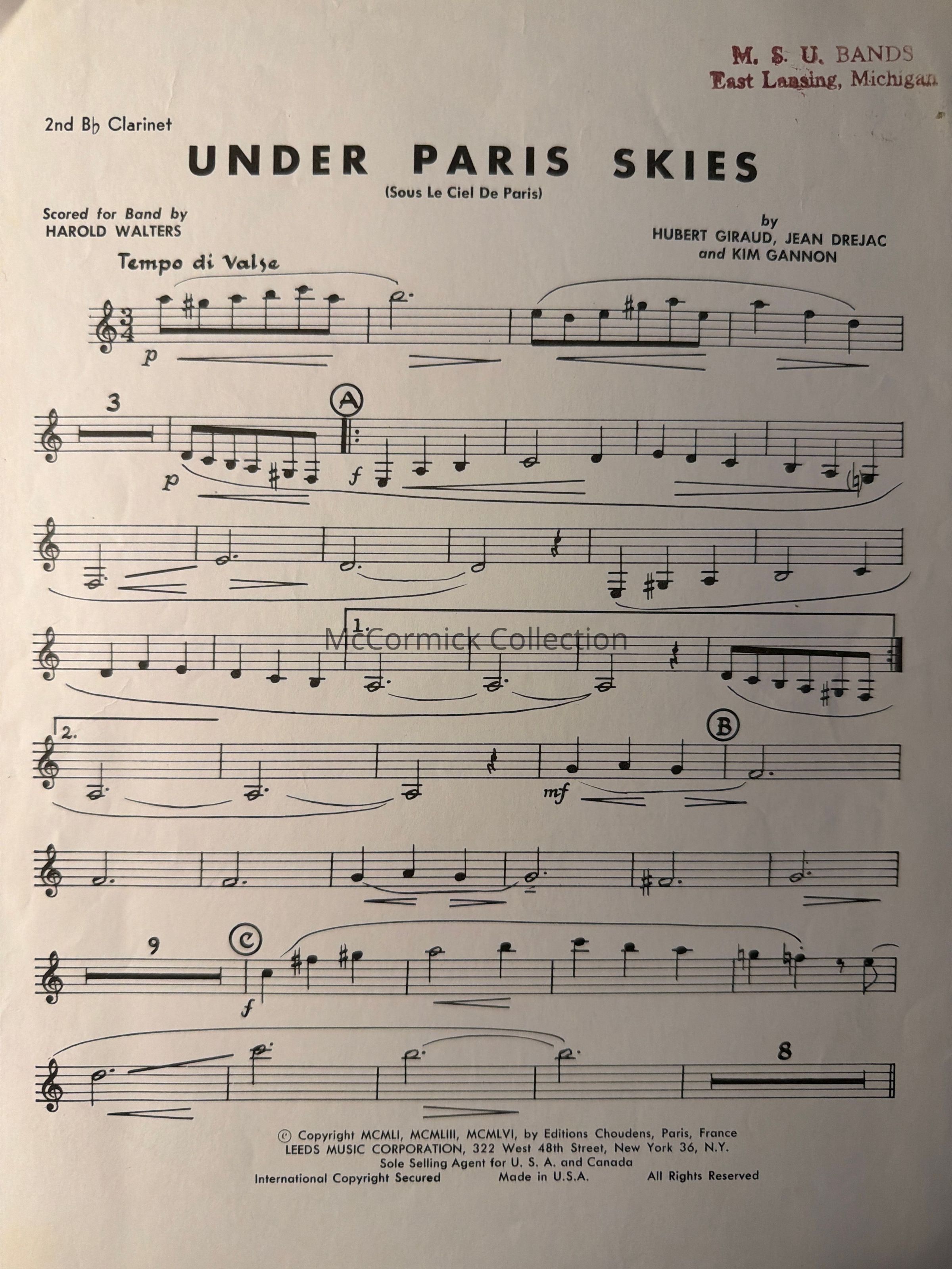 Under Paris Skies, MSU Bands Sheet Music