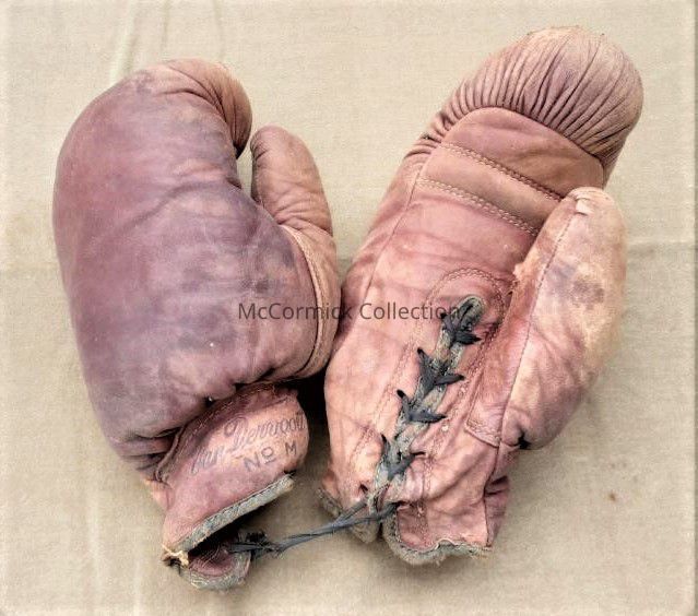 Pair of boxing gloves made by the Lansing VanDervoort Hardware and Sporting Goods brand.