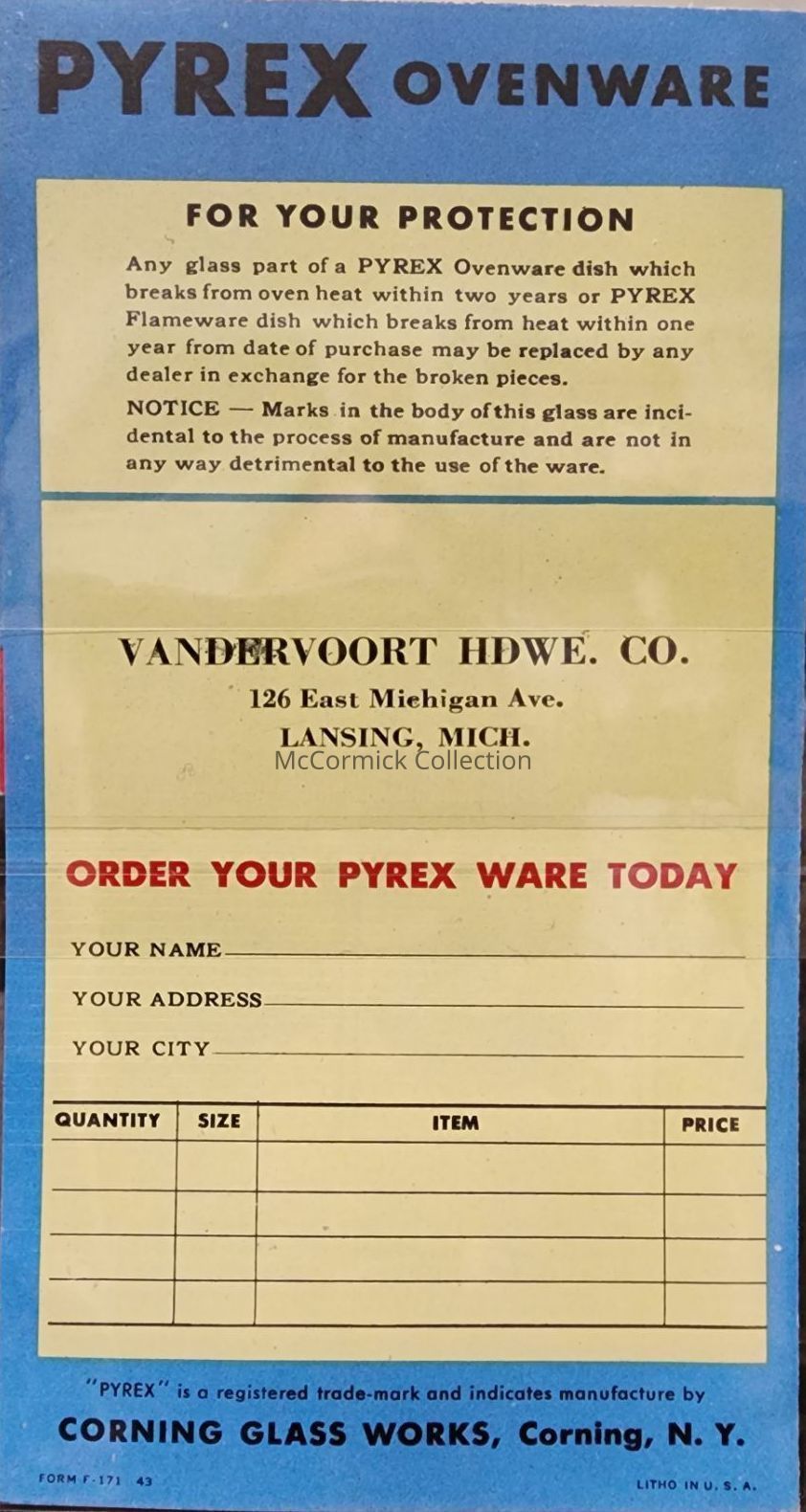 Vandervoort Hardware Pyrex Advertising Pamphlet