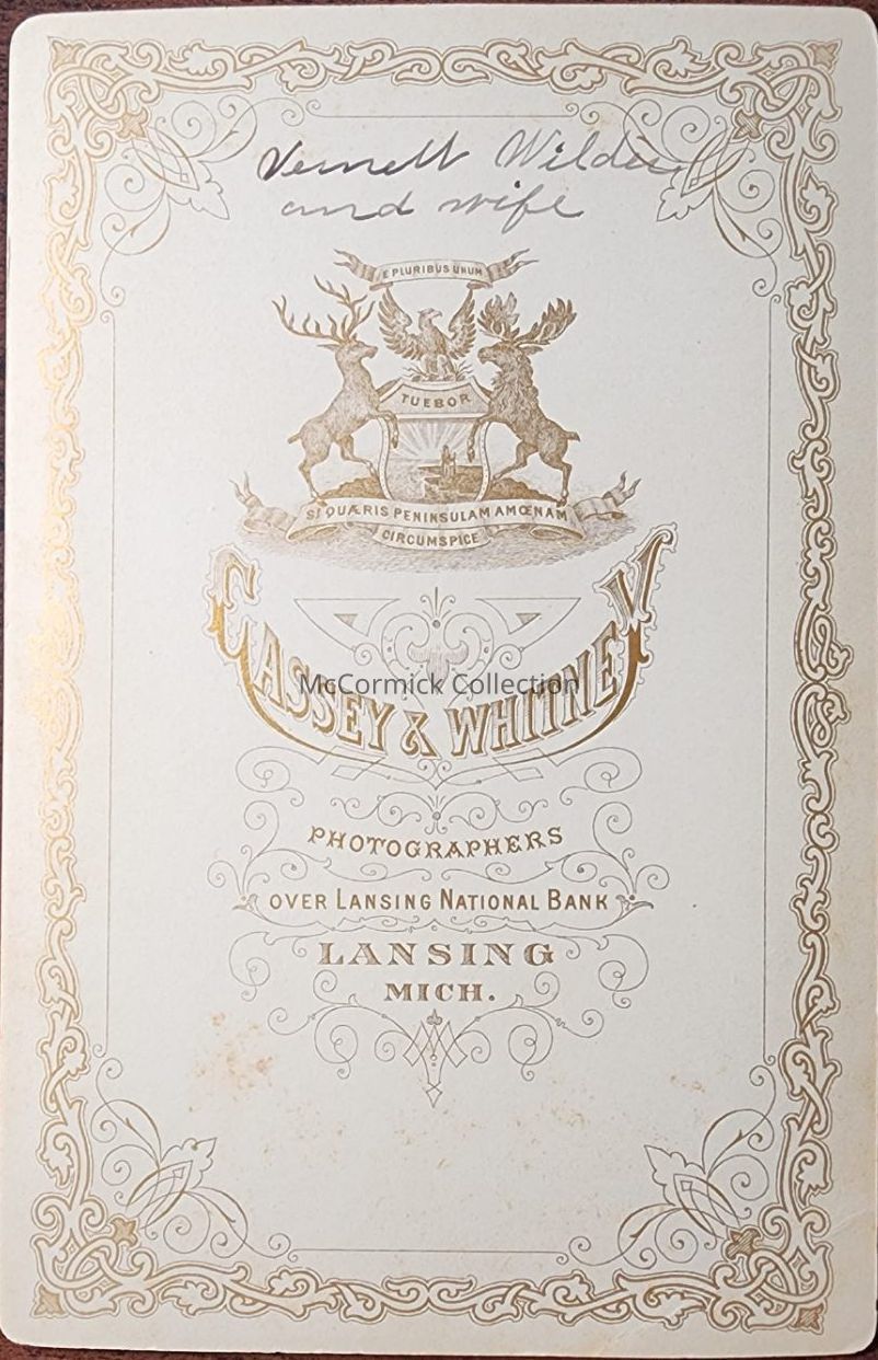 Cabinet card photograph of Vernell Wilder and wife by Lansing photographer Cassey and Whitney.