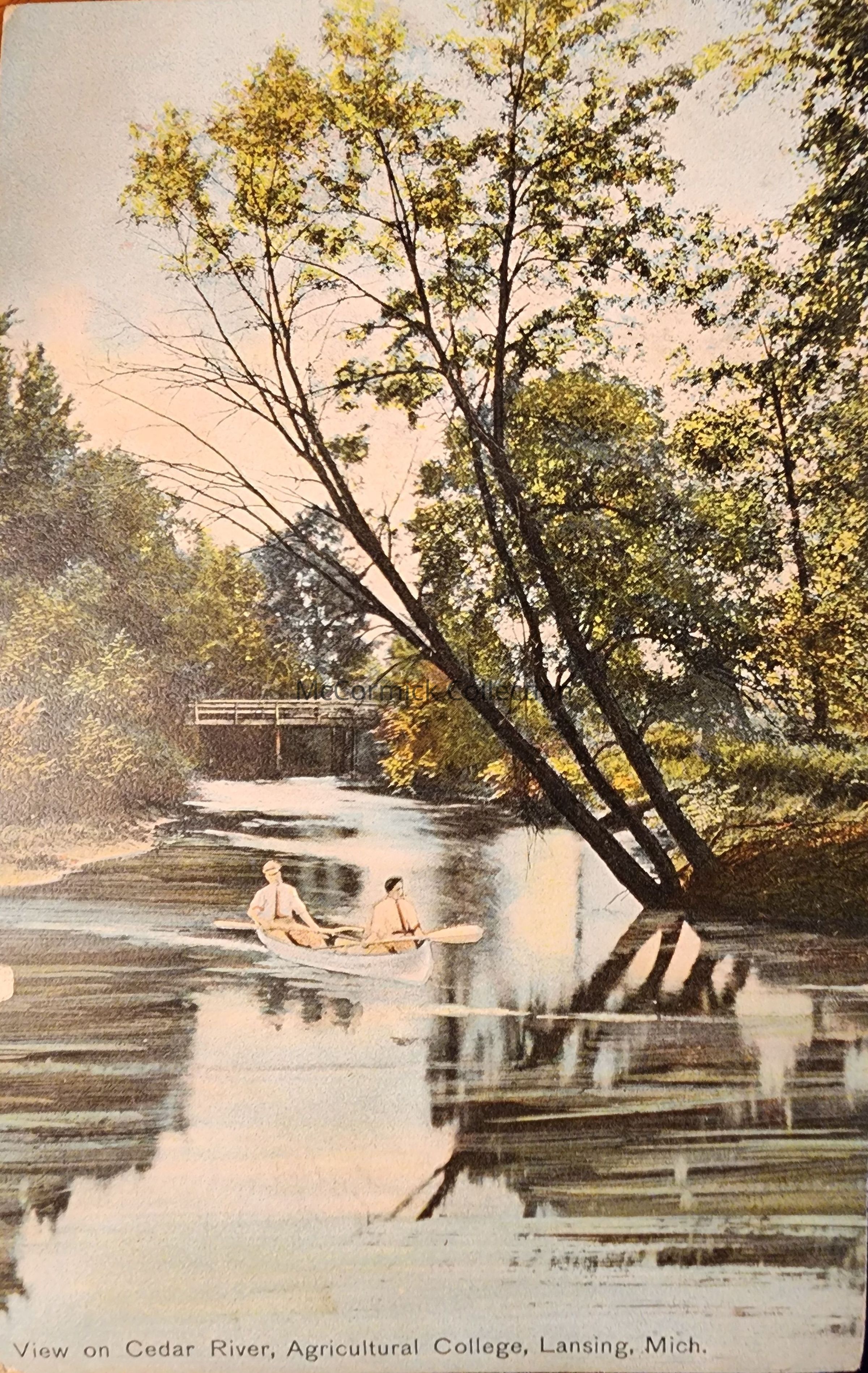 View on Cedar River, Agricultural College, Lansing, Mich., Postcard
