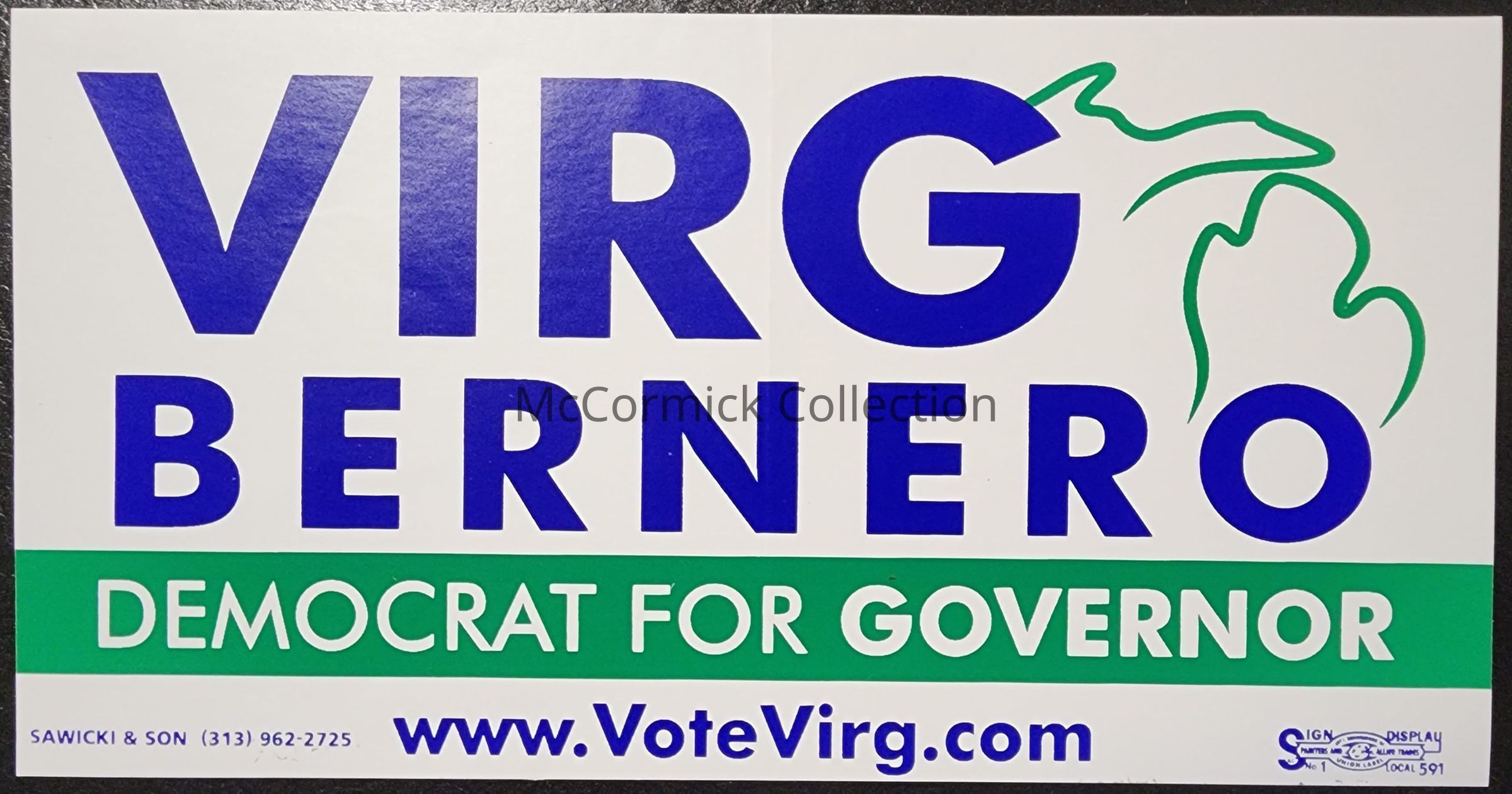 Virg Bernero Democrat for Governor Bumper Sticker