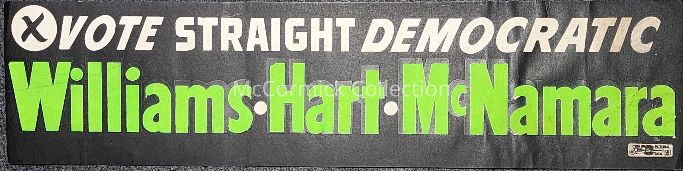 Vote Straight Democratic, Williams, Hart, McNamara Bumper Sticker