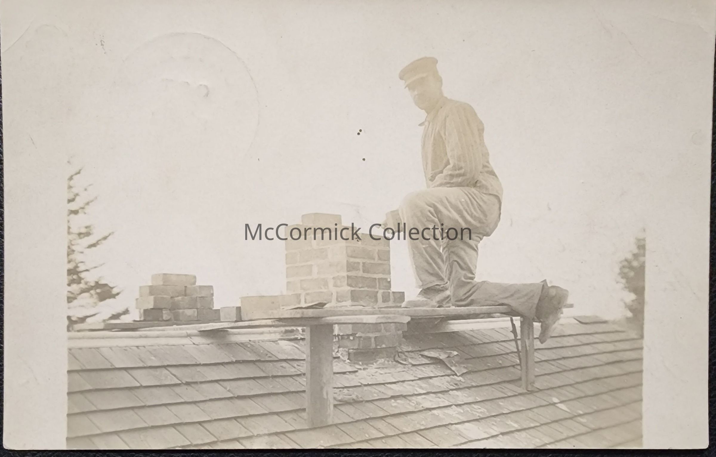 Real photo postcard of a Man working on brick masonry. It is addressed from Portland, Michigan to Mrs. W.B. Cook in Lake, Michigan, from W.B.C. (William B. Cook), a pioneer of Eight Point Lake. Portland postmark.