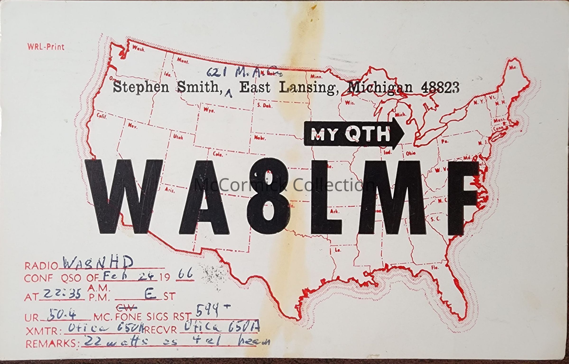 WA8LMF Stephen Smith QSL Postcard