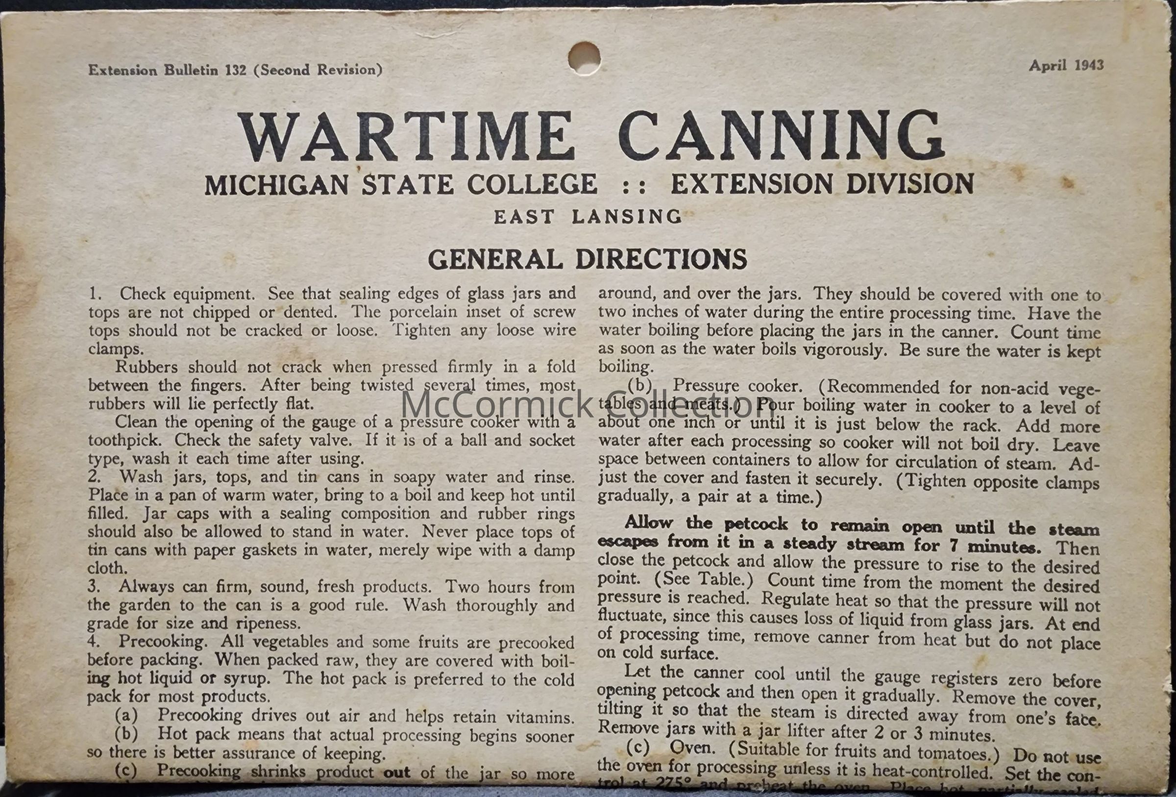 Wartime Canning, MSC Extension Bulletin, 1943