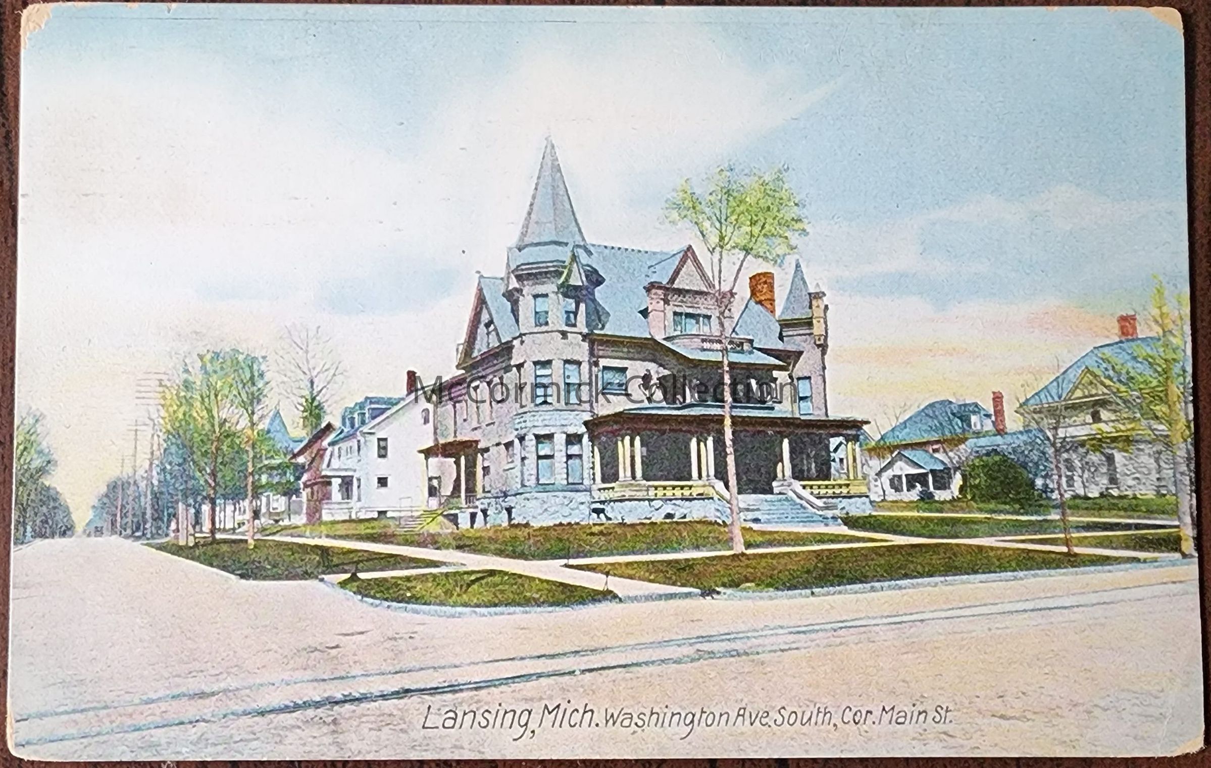 Washington Ave. South, Cor. Main St., Lansing, Mich. Postcard