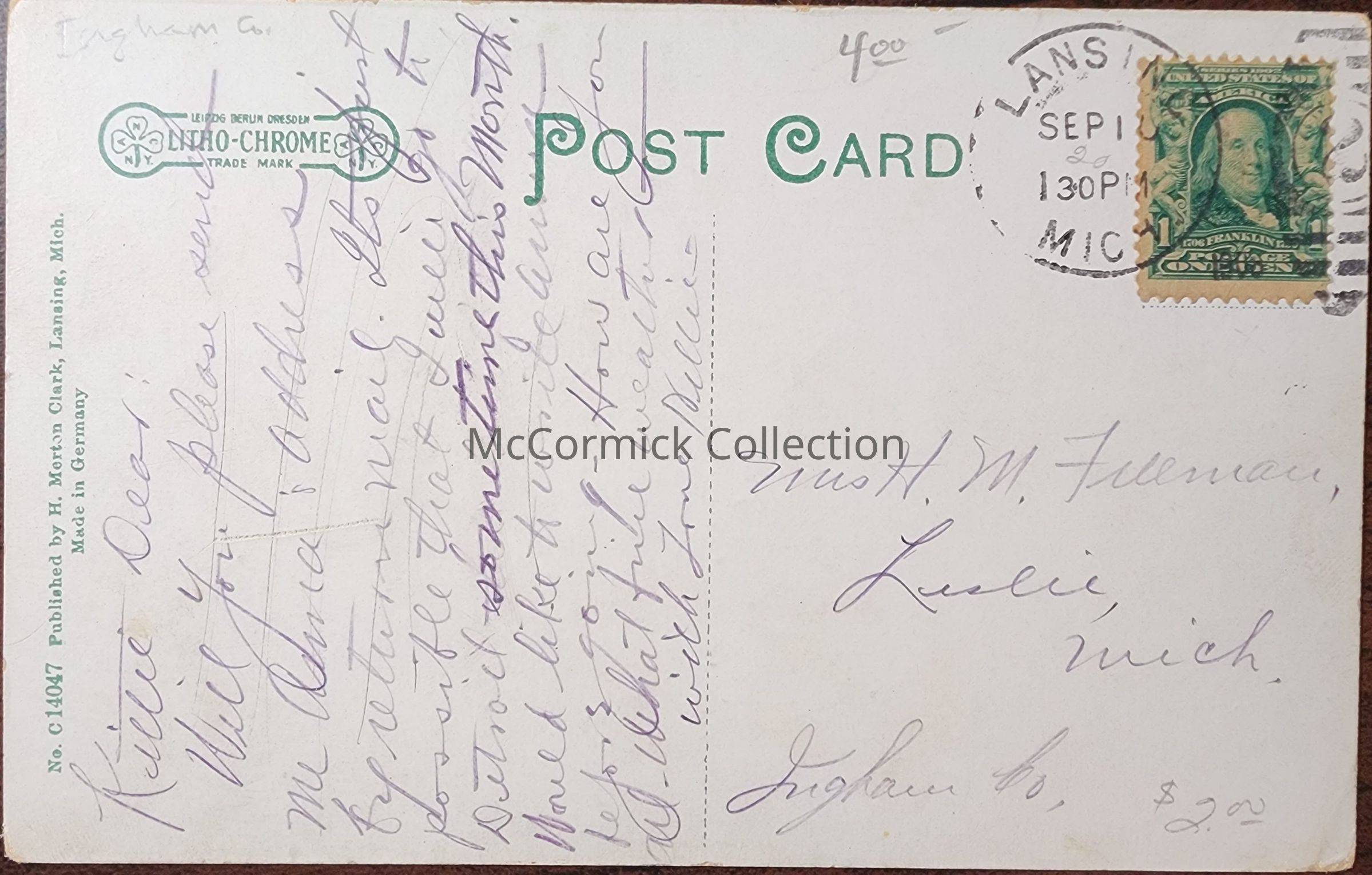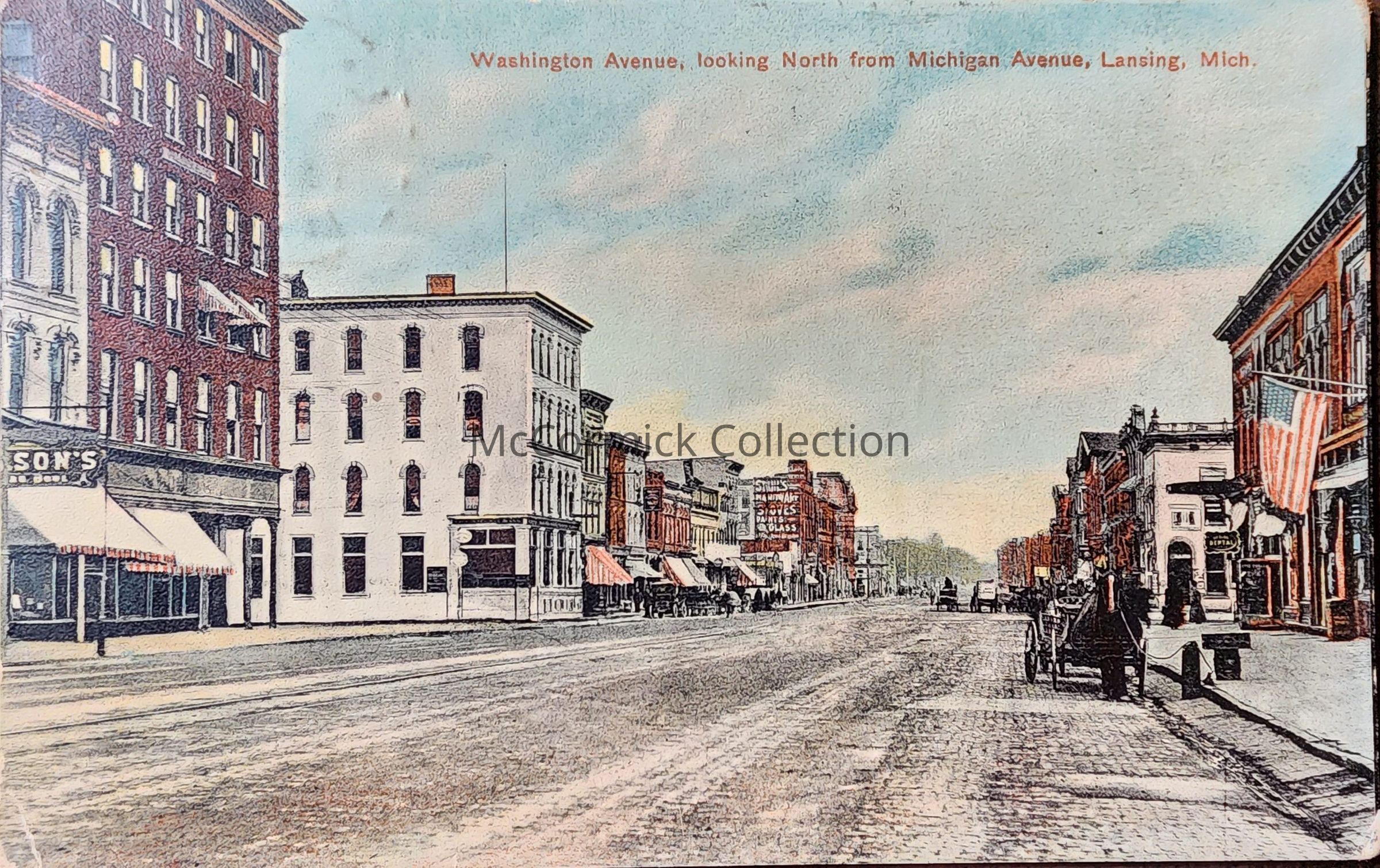 Washington Avenue, Looking North from Michigan Avenue, Lansing, Mich. Postcard