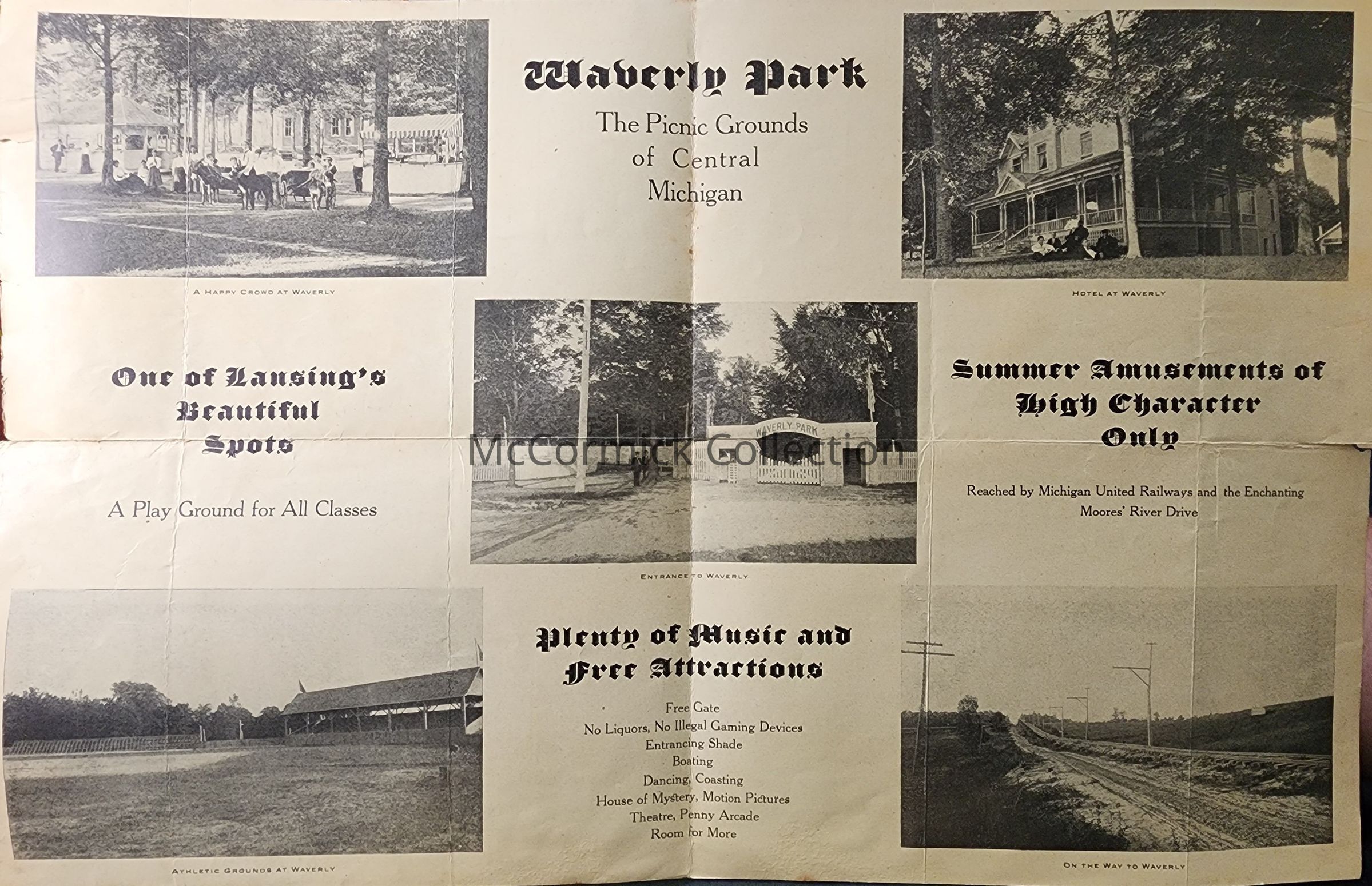 A fold-out letter and advertising flier for Waverly Park in Lansing, circa 1908.