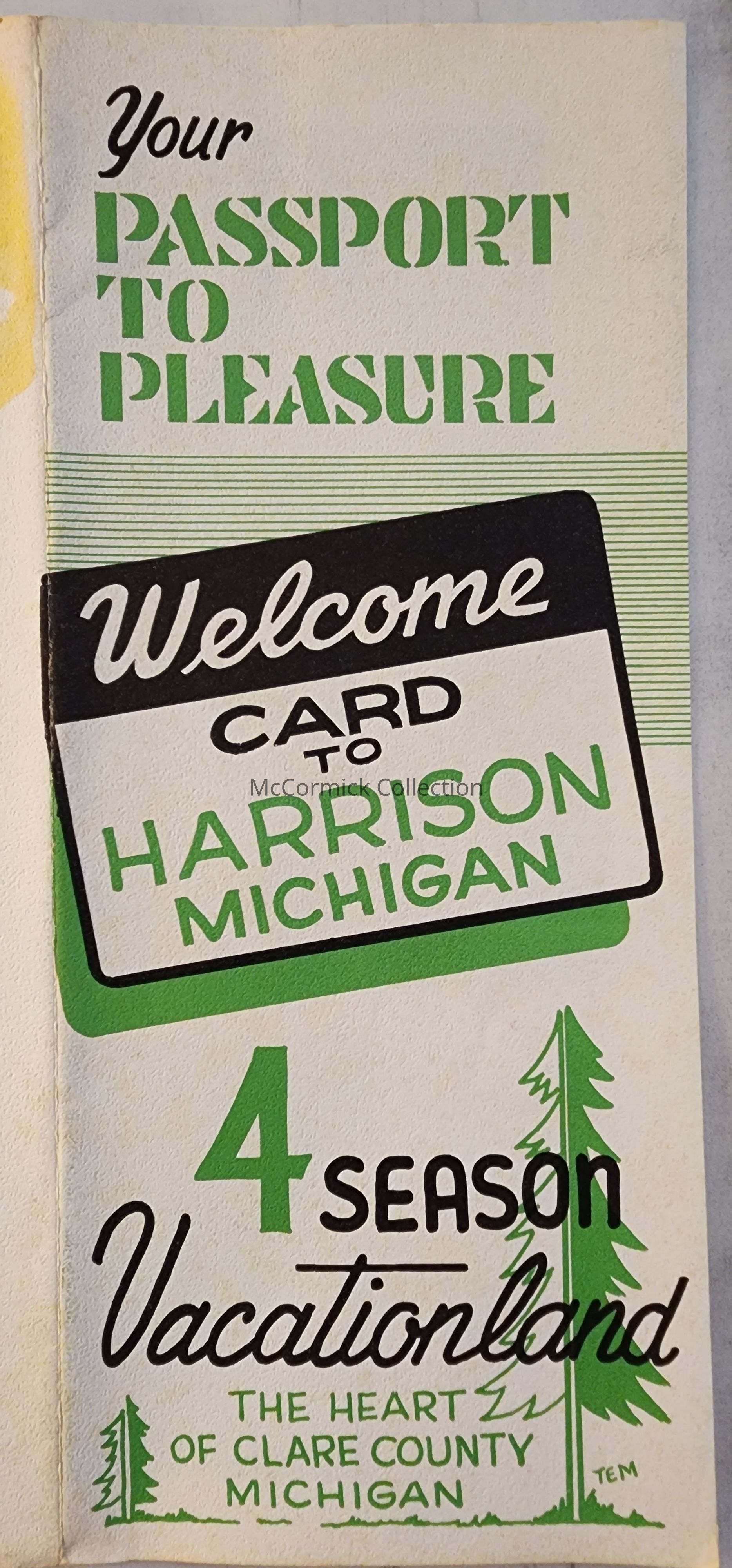 "Your Passport to Pleasure; Welcome to Harrison Michigan; 4 Season Vacationland; The Heart of Clare County Michigan."