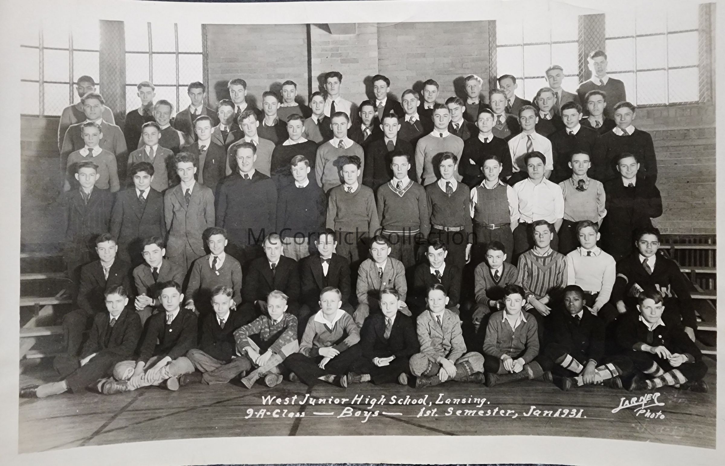 West Junior Hogh School, Lansing, 9A Class, Boys, 1st Semester, Jan 1931, Photo by Larner