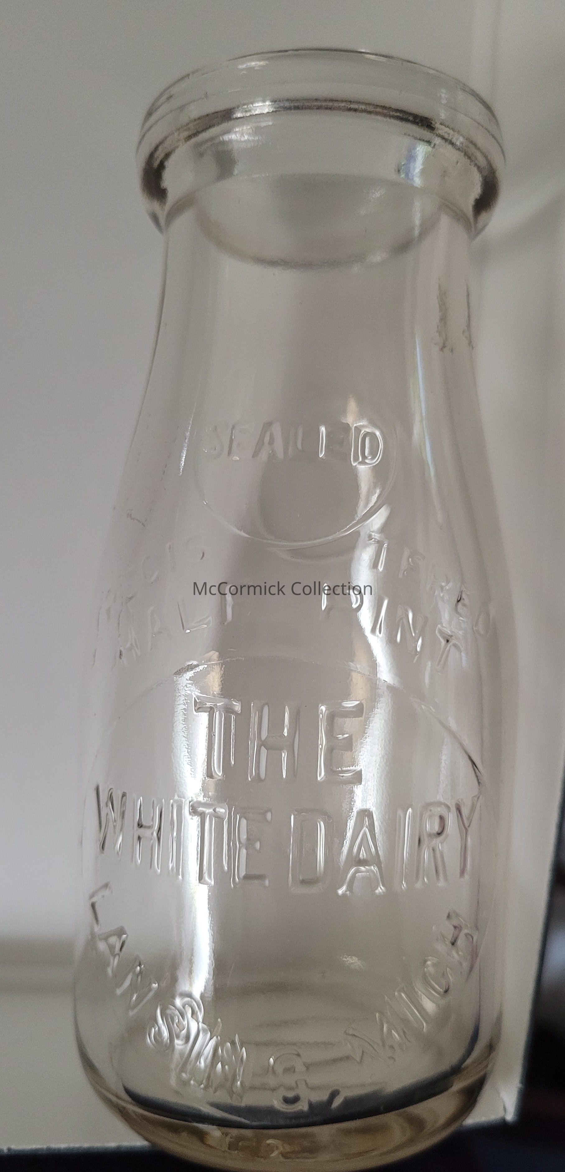 Embossed half pint bottle with slug plate from The White Dairy of Lansing.