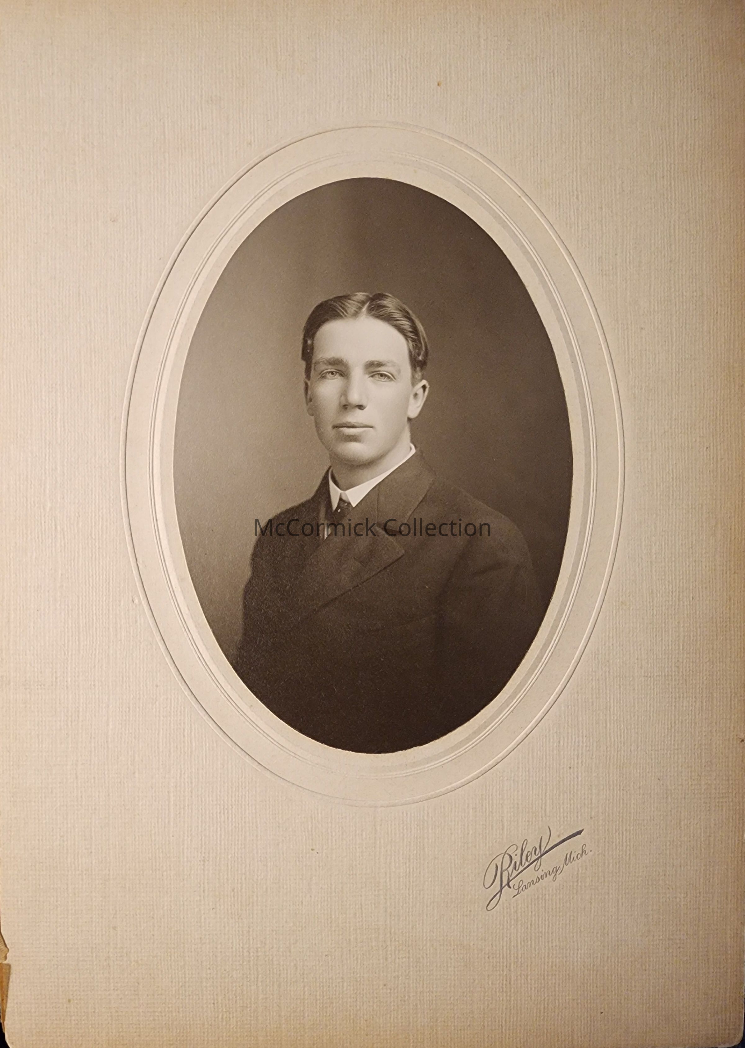Card mounted photograph of Will Ellwanger by Lansing photographer Riley.