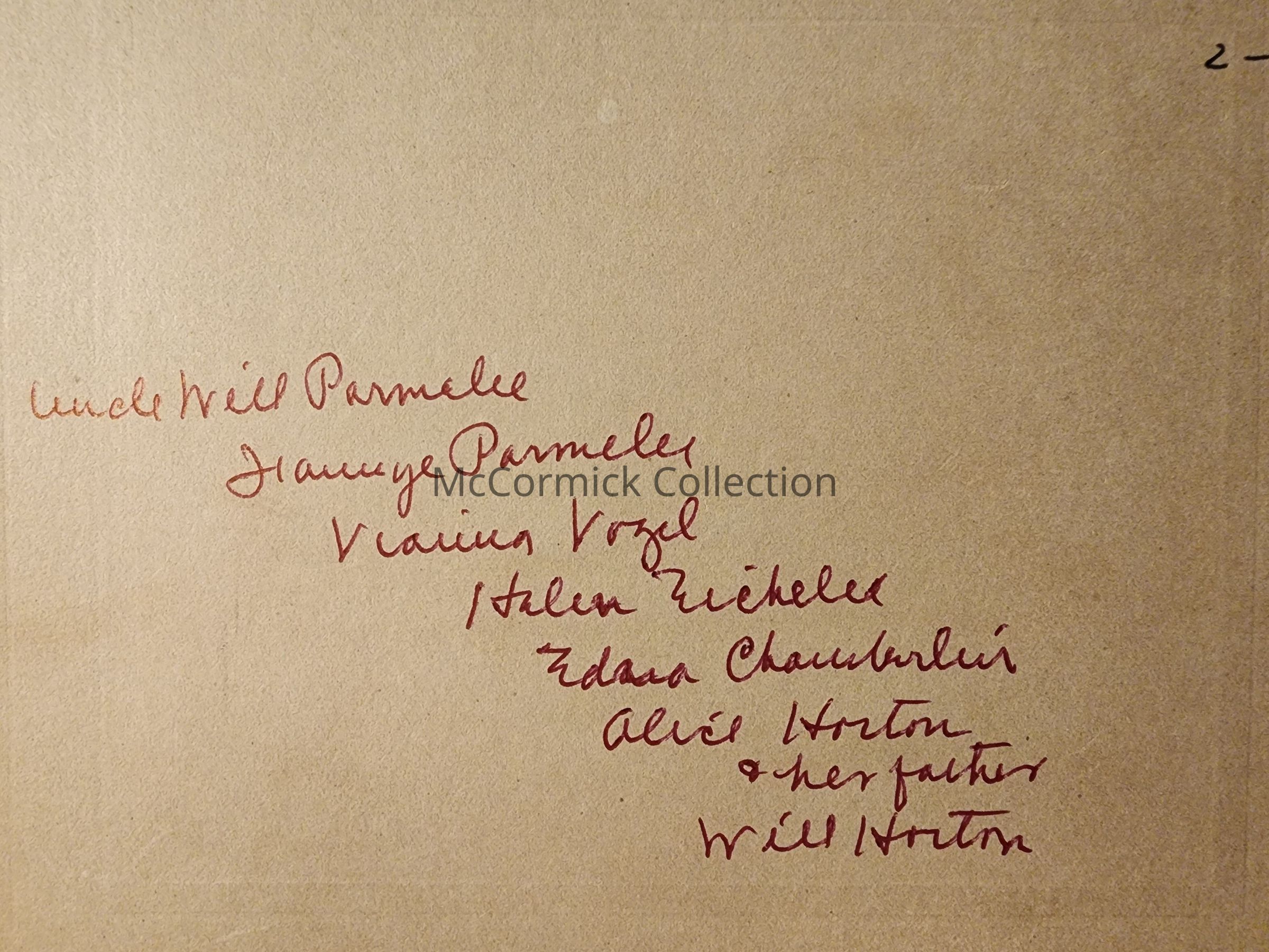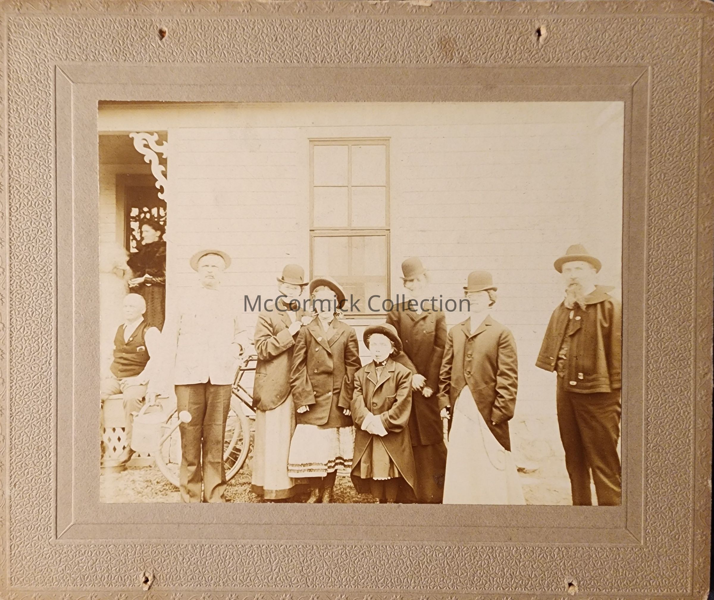 Card mounted photograph of an identified group of the family of Will Parmelee, Fannye Parmelee and others. See back of photo.