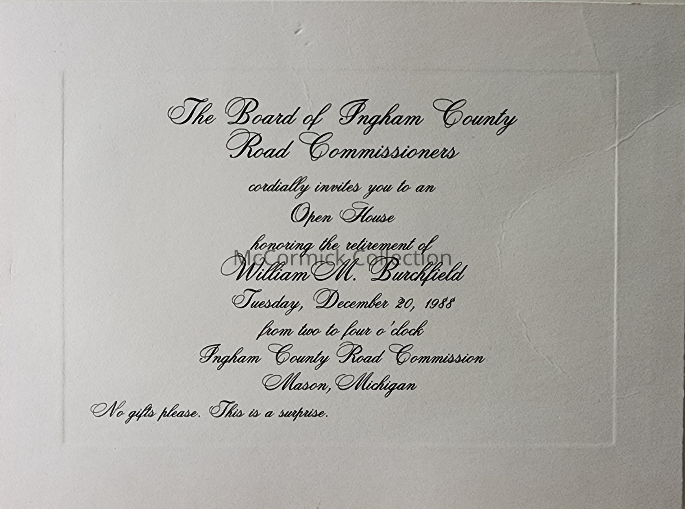 William M. Burchfield, Ingham County Road Commission, Retirement Invitation