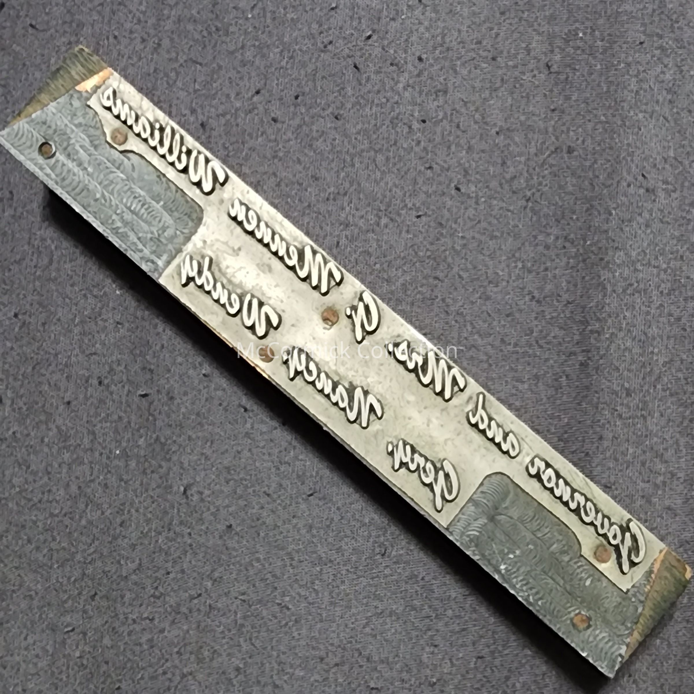 Printing block reading "Governor and Mrs. G. Mennen Williams, Gery, Nancy, Wendy." Likely used for the family Christmas cards.