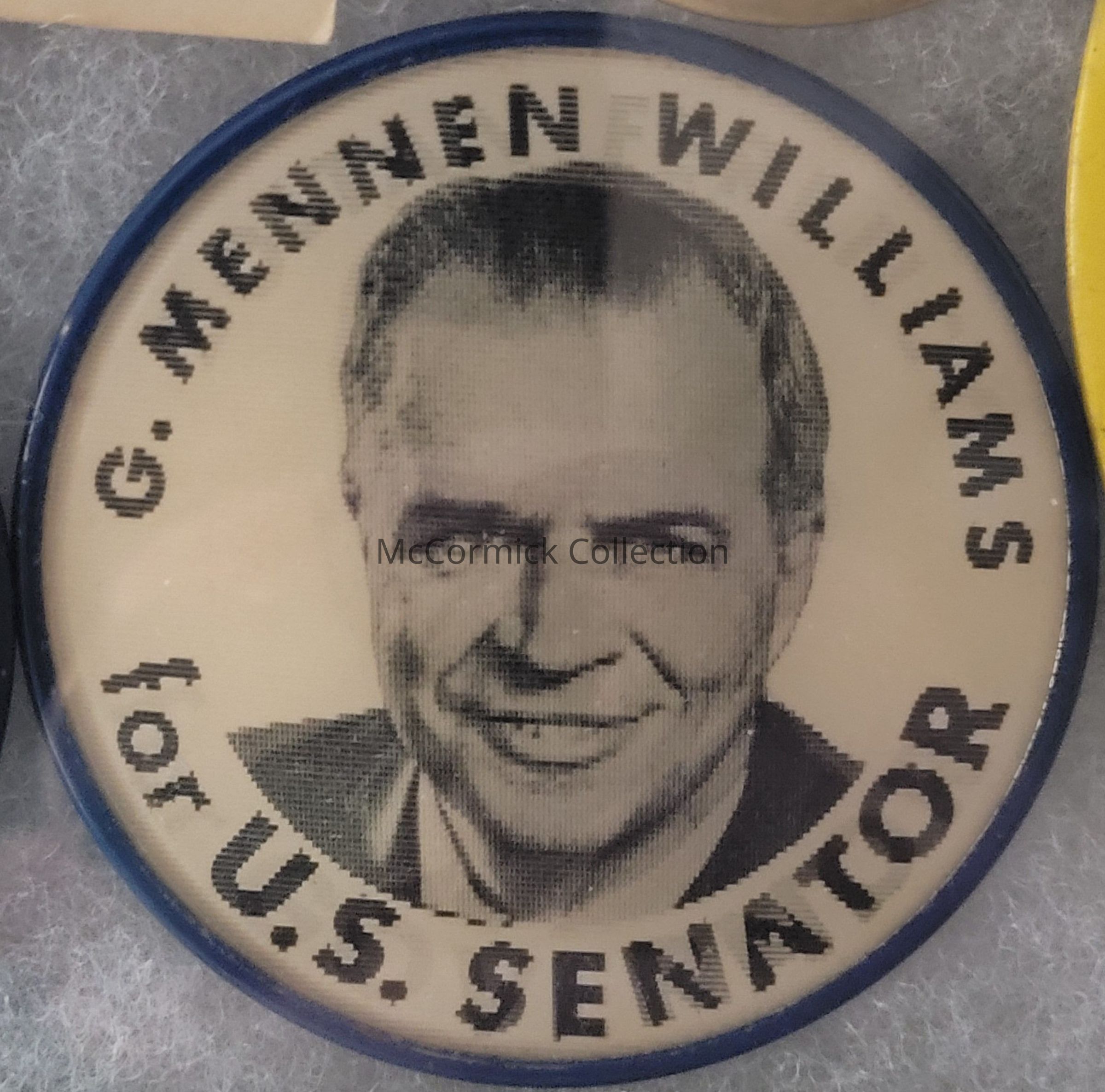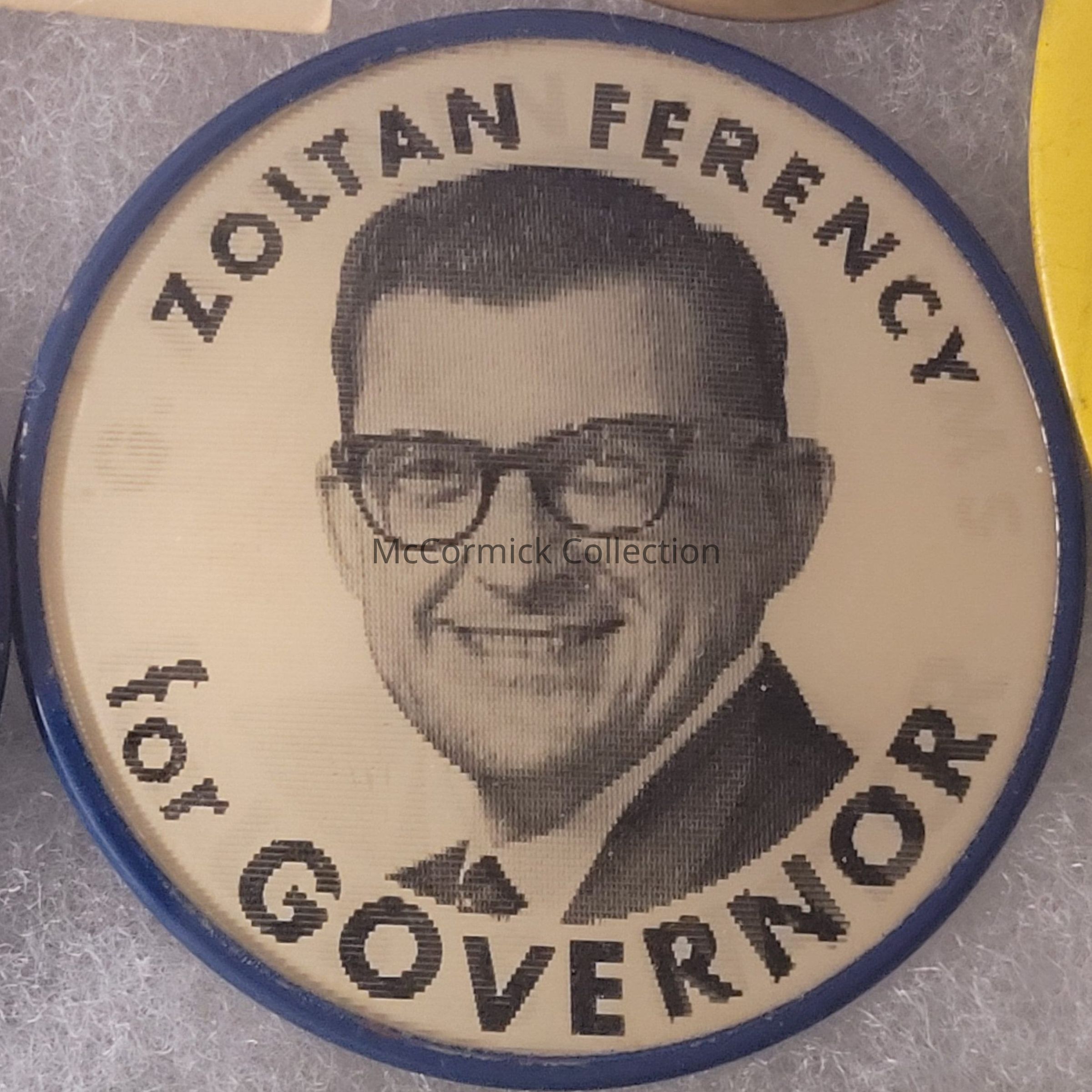 Flasher coattail button, 2.5", for G. Mennen Williams' campaign for U.S. Senate and Zolton Ferency's campaign for Governor in 1966.