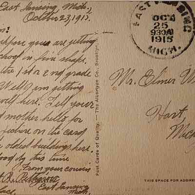 Postally used, East Lansing 1915 postmark.
