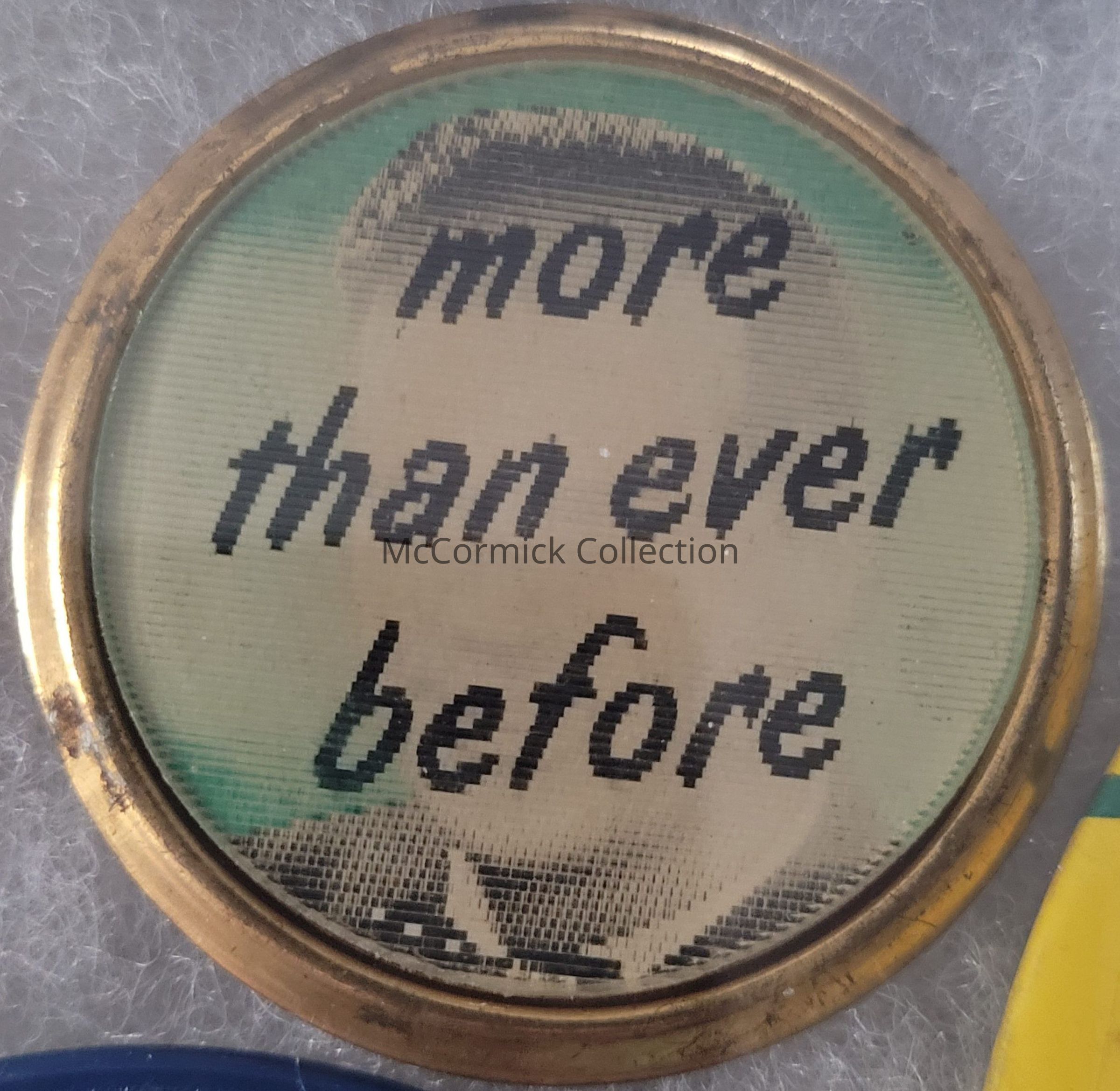 Political flasher button, 1.75", for Governor G. Mennen Williams including a picture and the phrase "more than ever before."